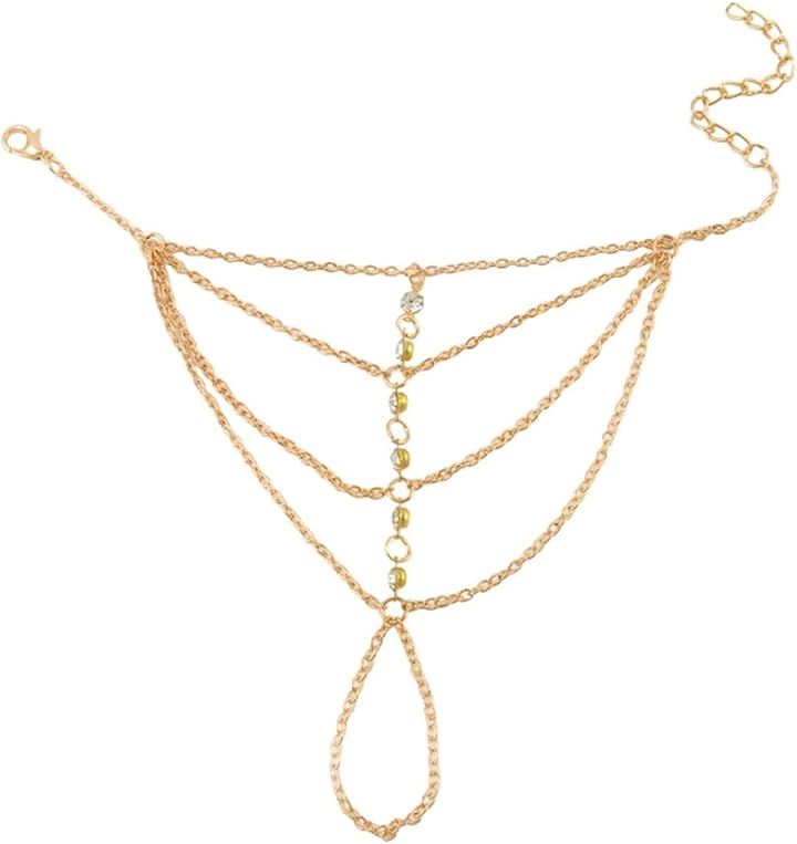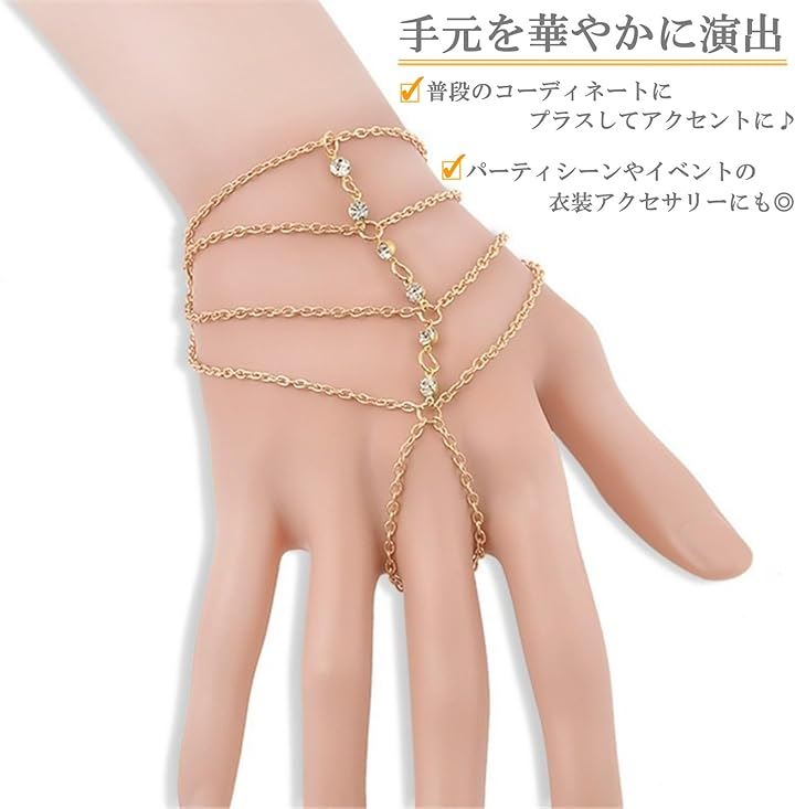 フィンガーブレスレット 1個 ゴールド チェーン レディース ジュエリー リング 一体型 アクセサリー
