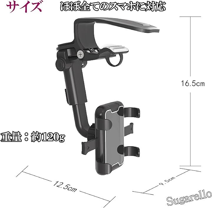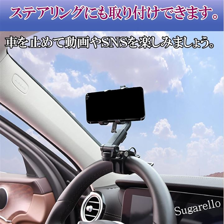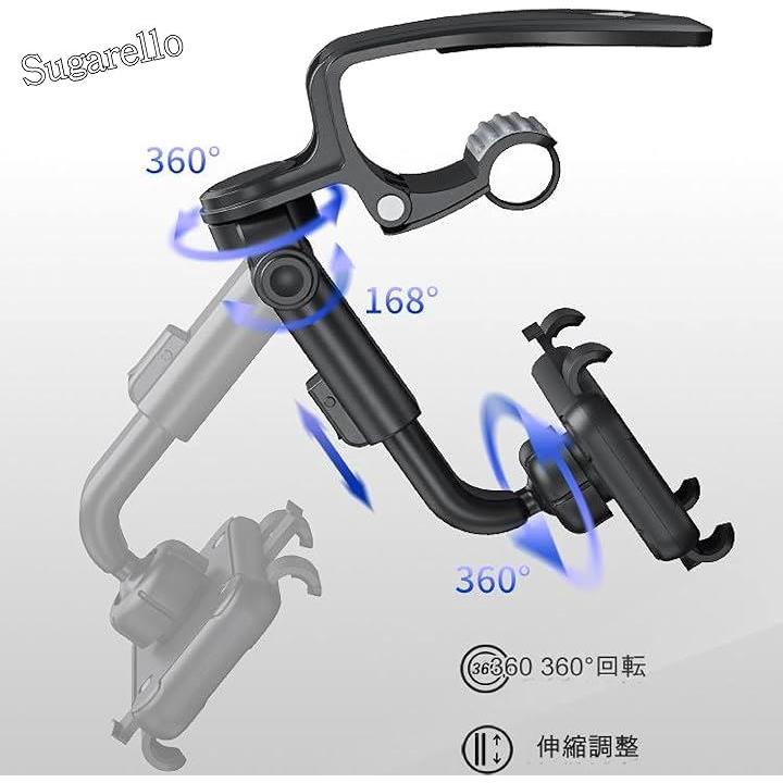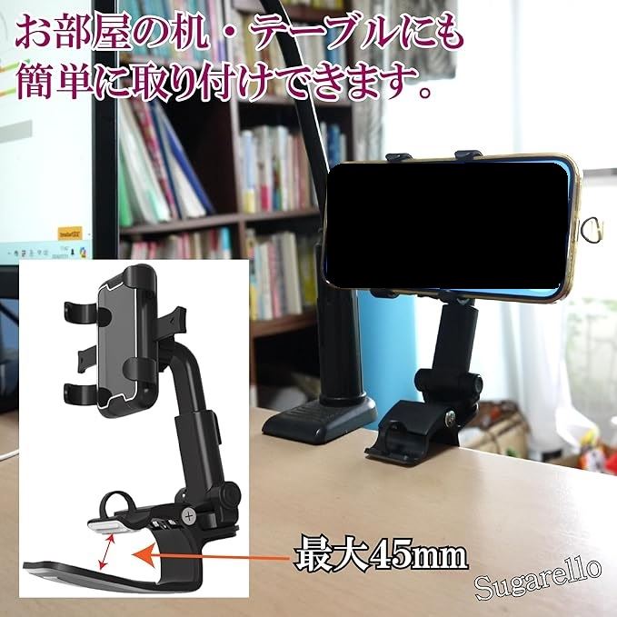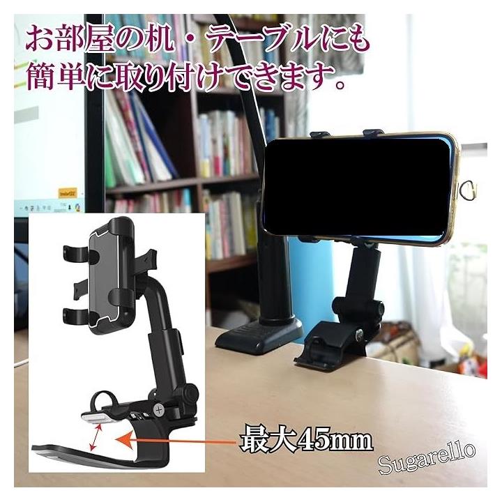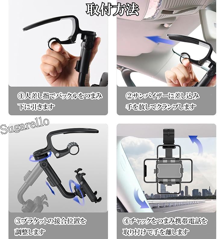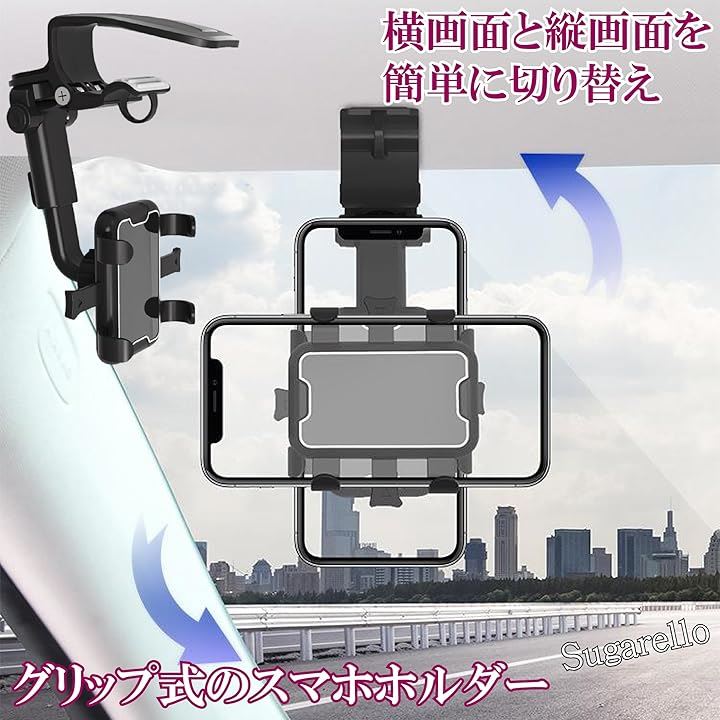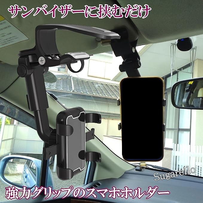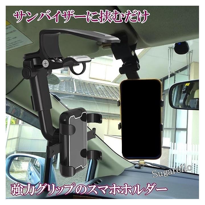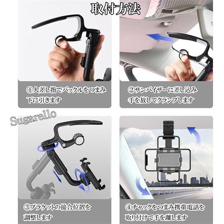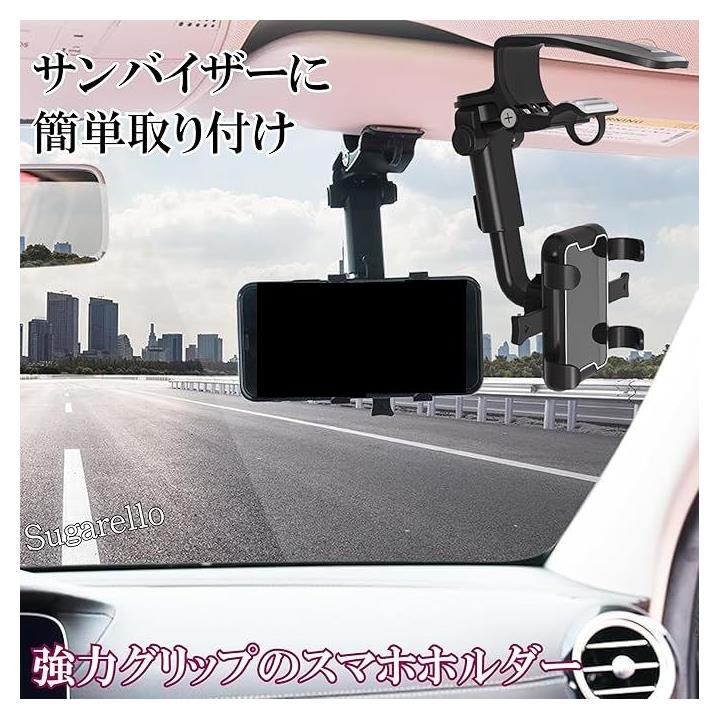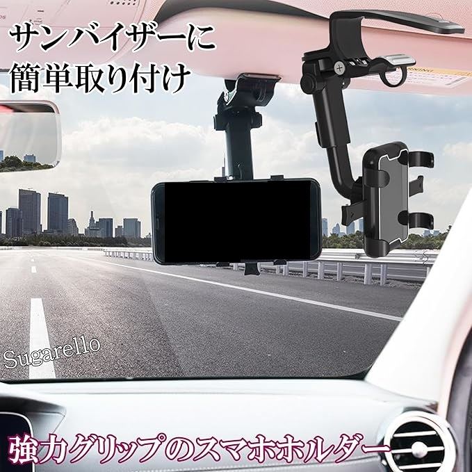 互換品Sugarello スマホホルダー サンバイザー 車載スマホホルダー クリップ式 車載携帯電話ホルダー 360°回転可能 スマホスタンド 車載ホルダー