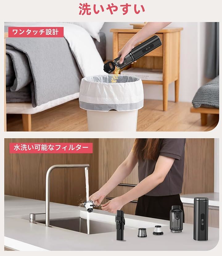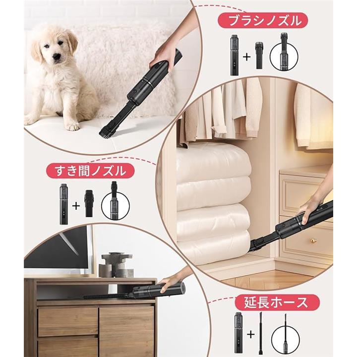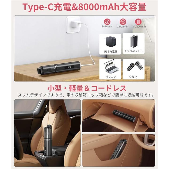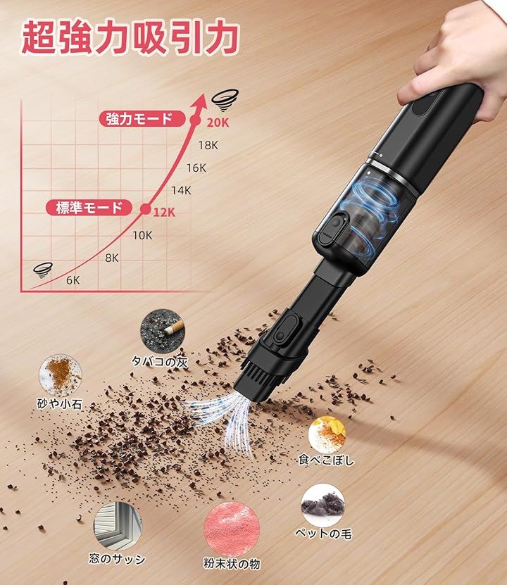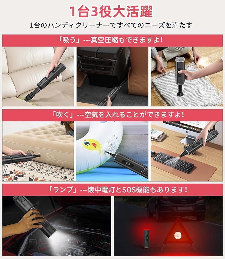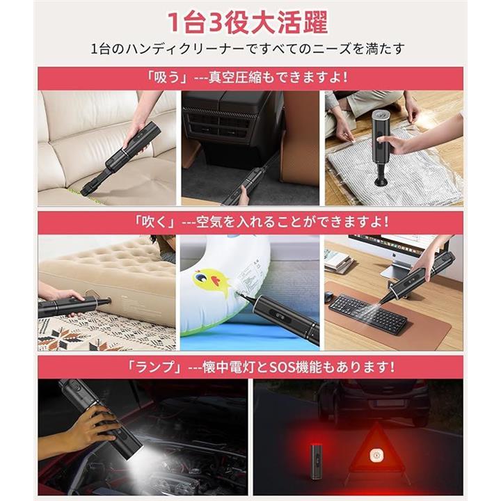ハンディクリーナー 20 000Pa 多機能 車用掃除機 コードレス 強力吸引力 照明機能 LED照 3in1電動エアーポンプ機能付き ハンディー掃除機 usb充電 2段階モード ミニ 停電対策 日本語取扱説明書 交換用フィルター付き P22