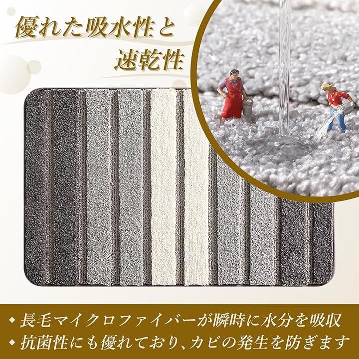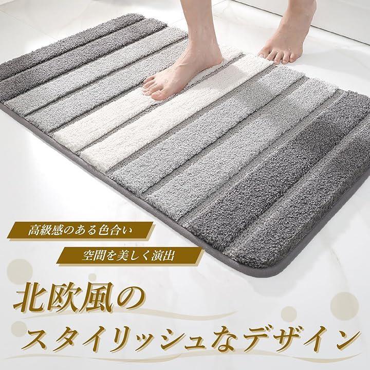 Crystal craft バスマット 大判 風呂マット 速乾 足拭きマット 洗面台 マット 滑り止め 足ふきマット 風呂 bathroom mat 吸水性 シンプルデザイン「グレー 40x60cm」 |