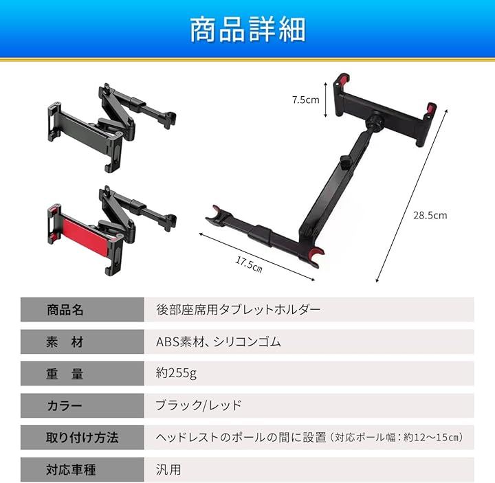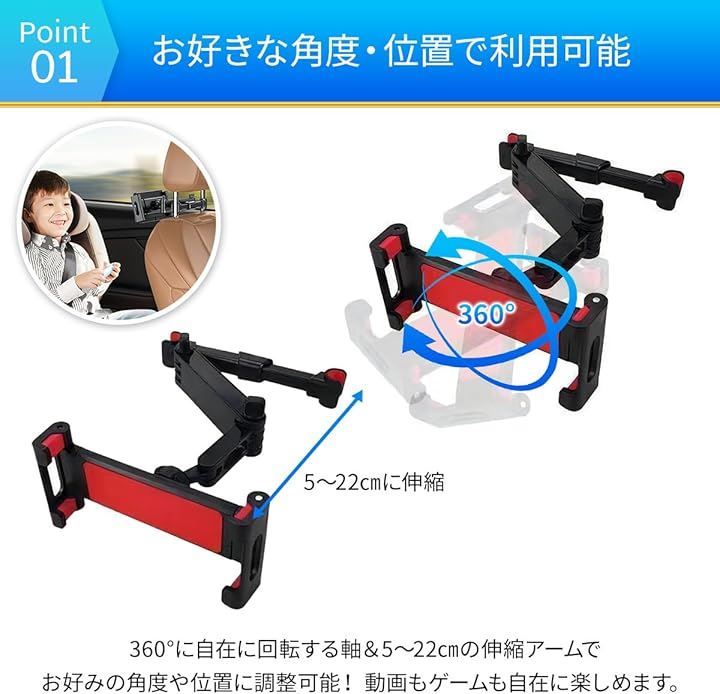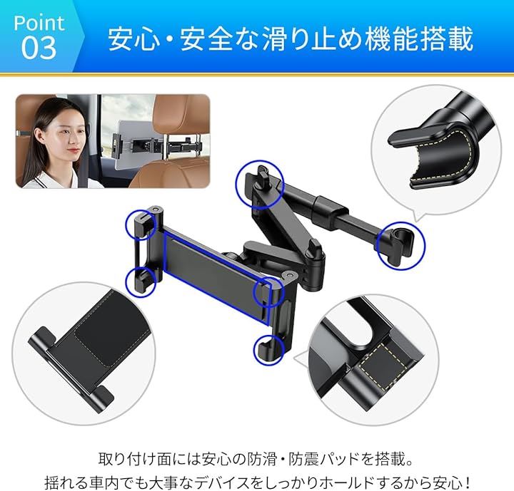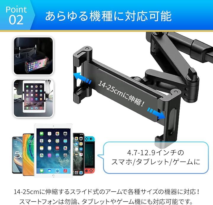 互換品 タブレット ホルダー 車載 後部座席 ヘッドレスト 伸縮アーム スマホ 汎用 iPad android