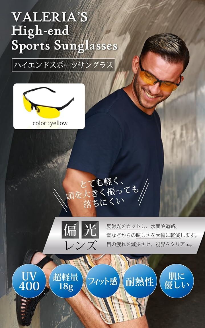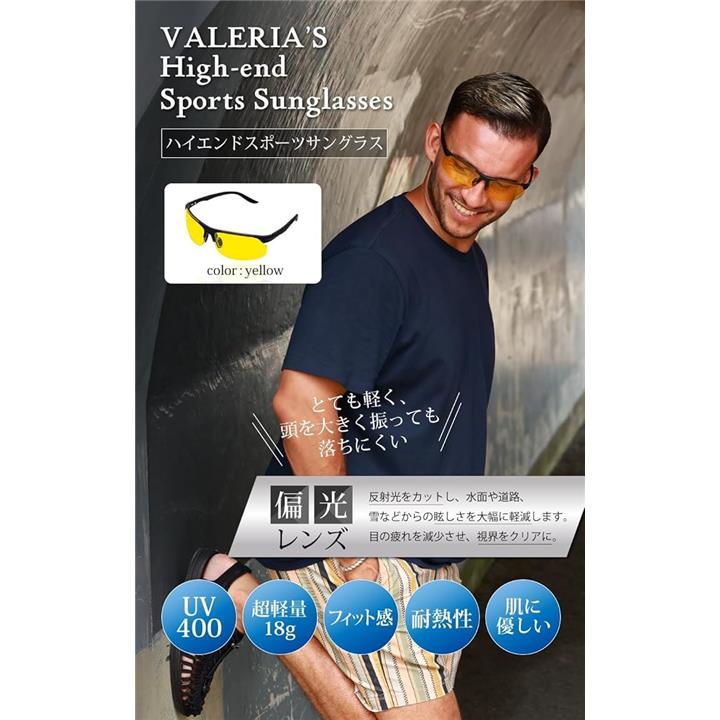 ヴァレリア ハイエンド 偏光 サングラス スプリングヒンジ採用 TACレンズ TR90フレーム ハードケース付き スポーツ アウトドア アンチグレア UVカット