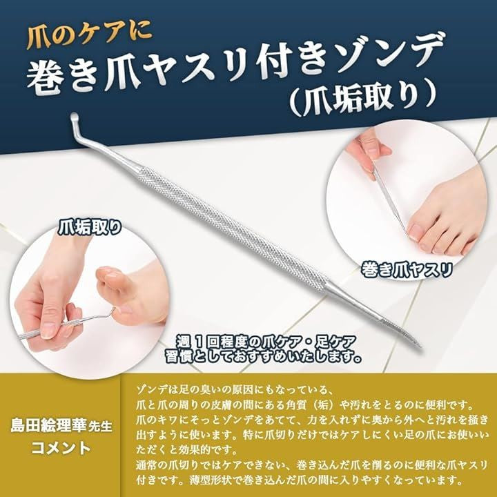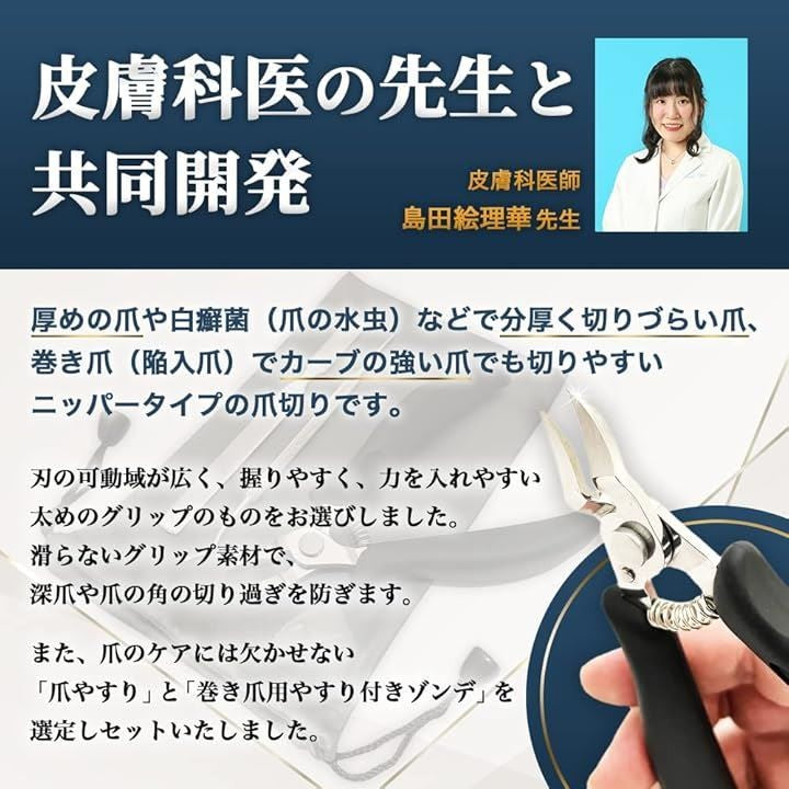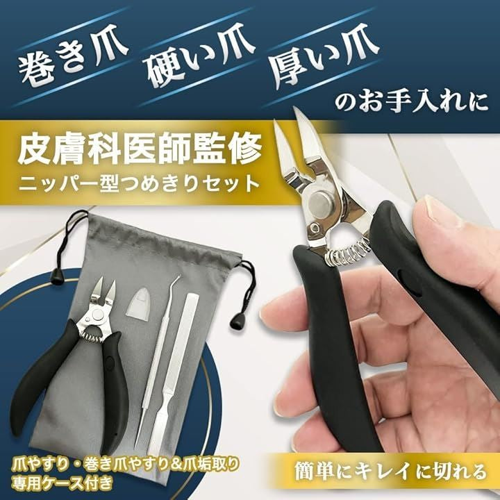 皮膚科医監修 爪切り ニッパー ステンレス製 つめきり セット 巻き爪 厚い爪 爪やすり ゾンデ付き