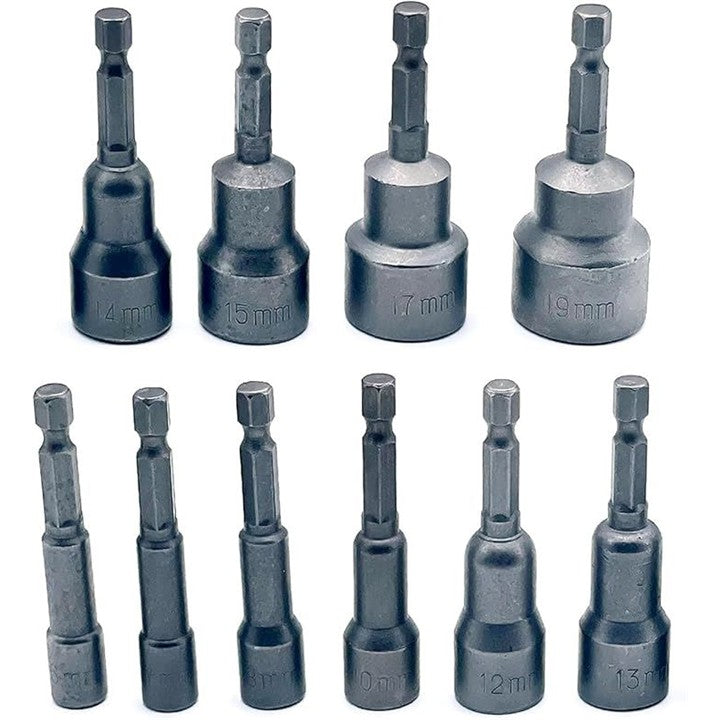 互換品 互換 ディープ ソケット ビット インパクト アダプター 電動 ドリル ドライバー 用 マキタ ハイコーキ 6~19mm 6.35mm 六角軸 10本セット