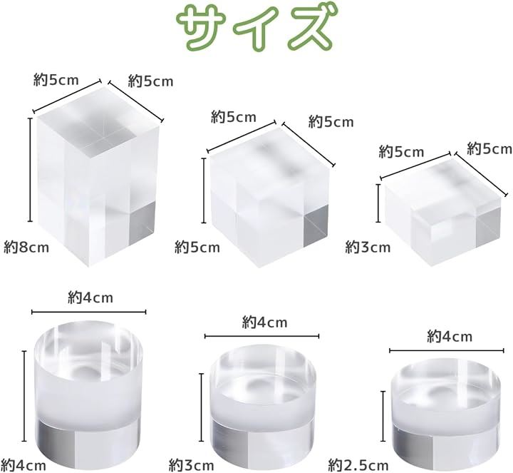 アクリル 台 ディスプレイスタンド ブロック 台座 展示台 円柱 四角 6種