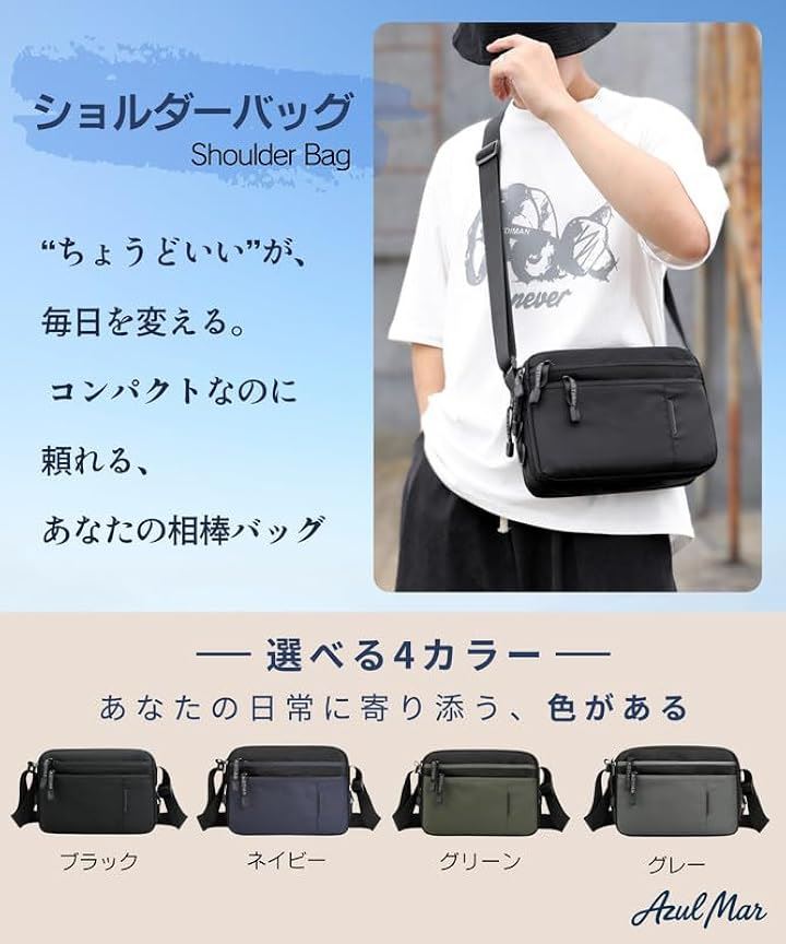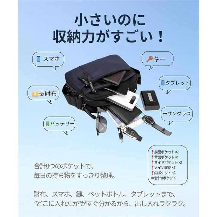 [Azul Mar] ショルダーバッグ メンズ 撥水 軽量 斜めがけ 多収納 ボディバッグ 防水 小さめ ミニバッグ 横型 サコッシュ 多機能 サブバッグ 旅行 通勤 アウトドア |