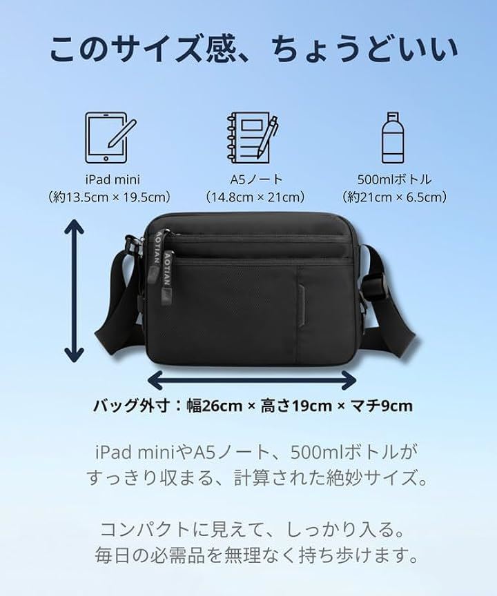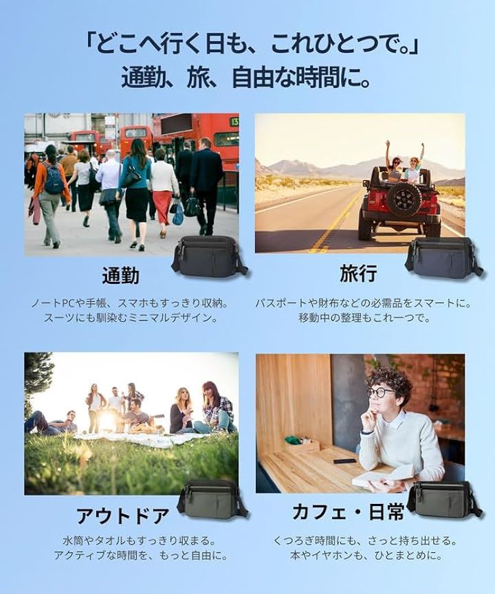アクティブなあなたの毎日を、もっと自由に、もっと快適にするための“答え”が、この多機能ショルダーバッグです。