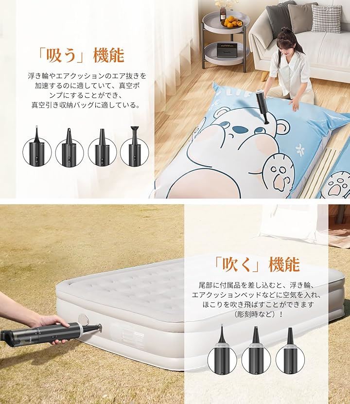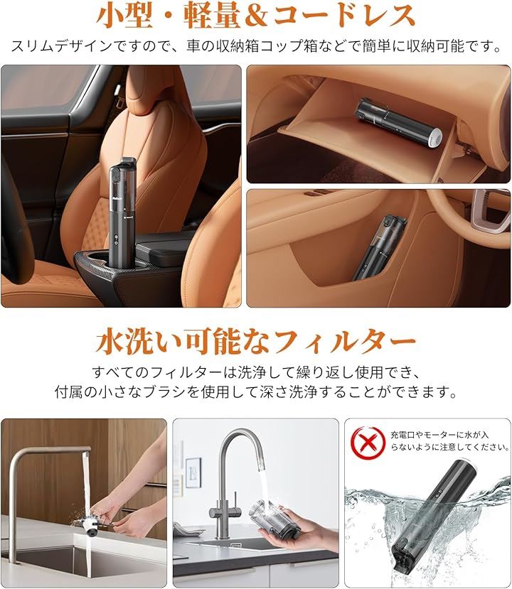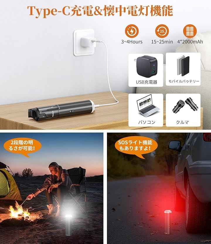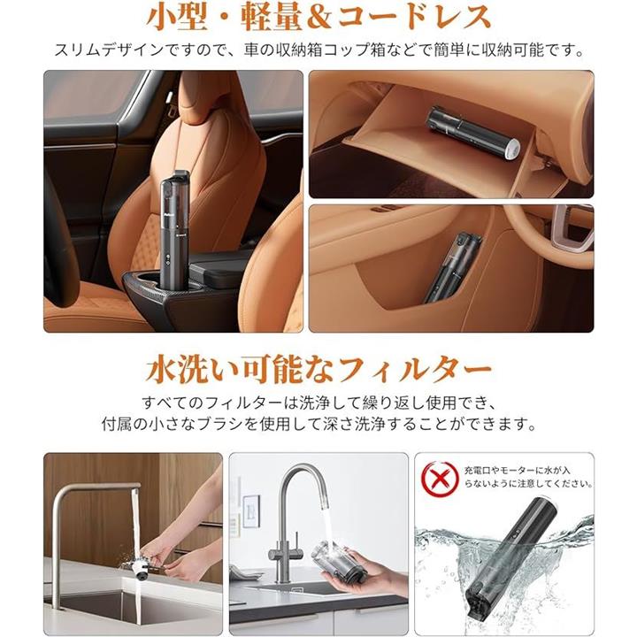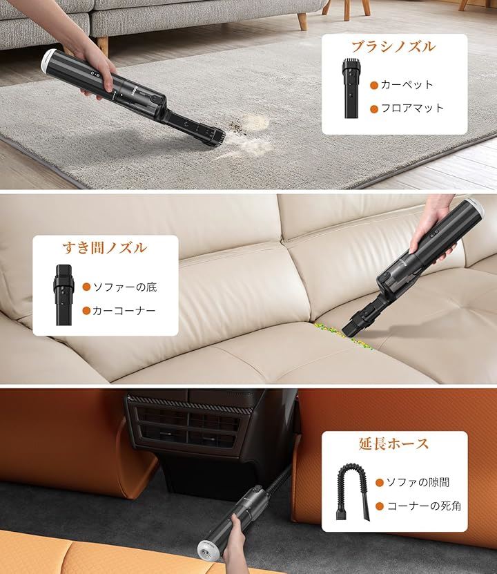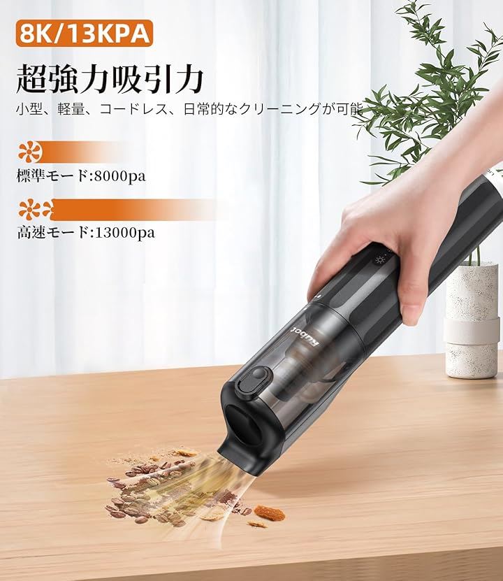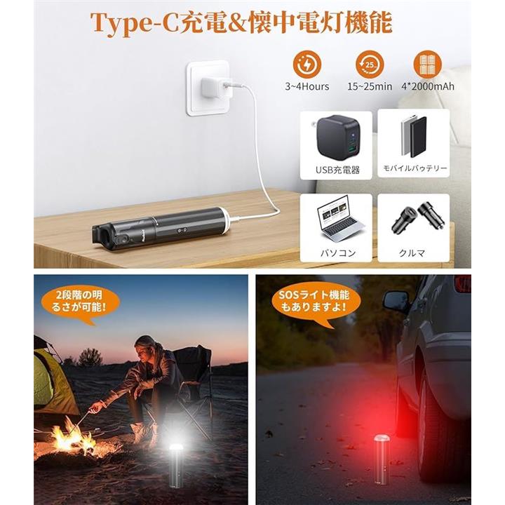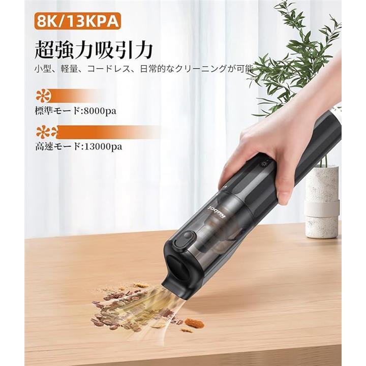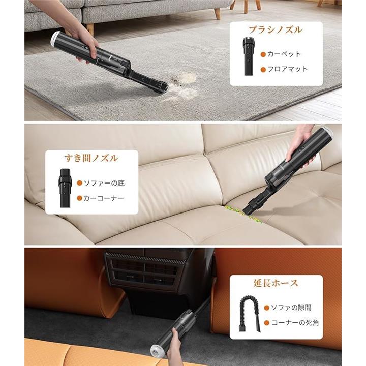 ハンディクリーナー 車用掃除機 コードレス 13000PA強力吸引力 照明機能 LED照 3in1電動エアーポンプ機能付き ハンディー掃除機 usb充電 2段階モード 機能ミニ掃除機 コンパクト 日本語取扱説明書