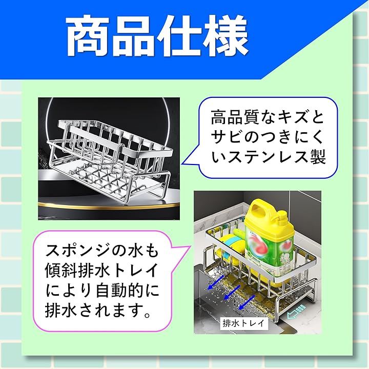 スポンジホルダー キッチン 収納 スポンジ置き キッチン収納 ステンレス製 スポンジラック たわしホルダー