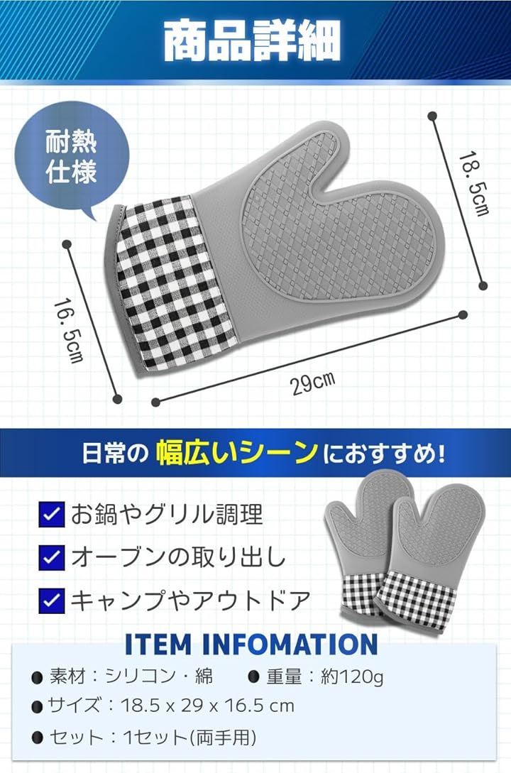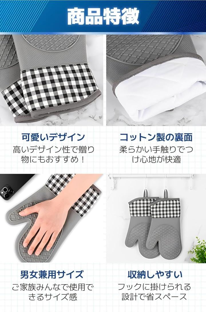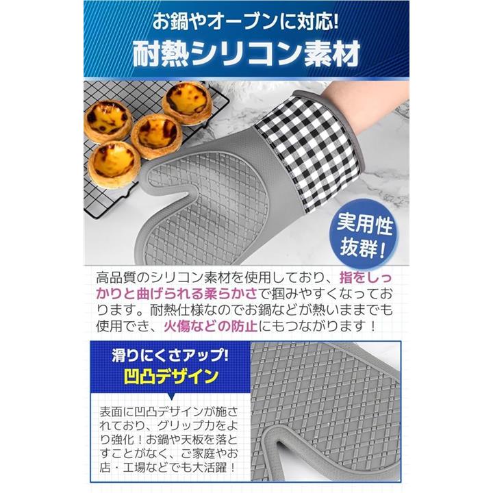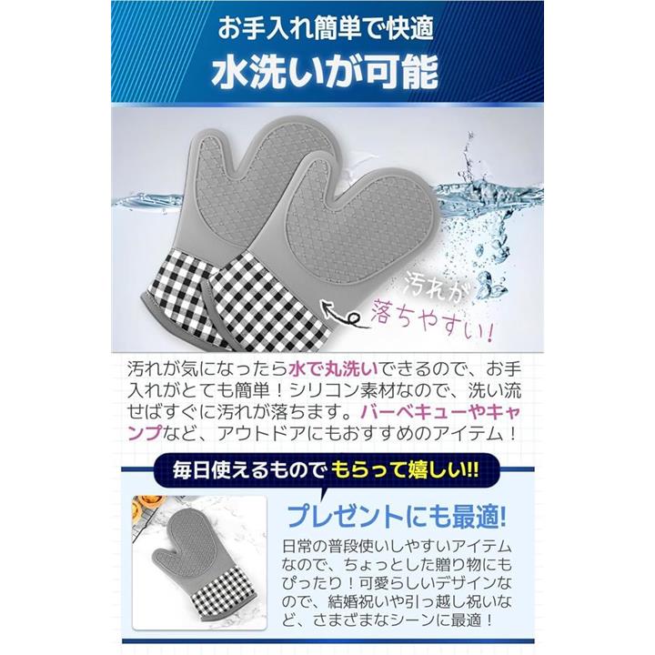 鍋つかみ ミトン 耐熱 オーブンミトン 手袋 キッチン シリコン 洗える おしゃれ