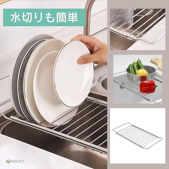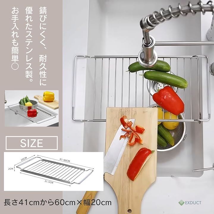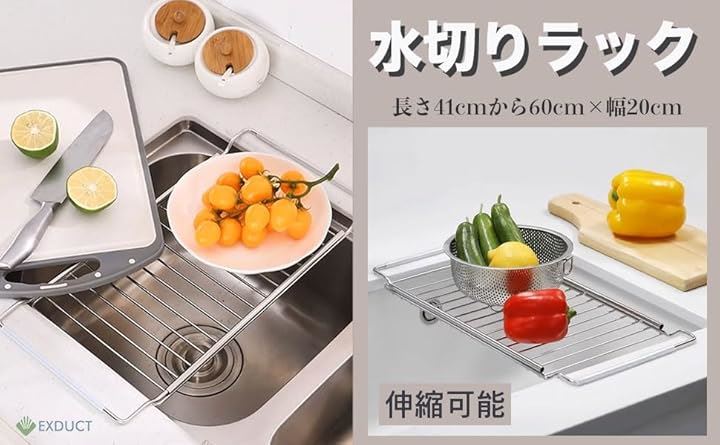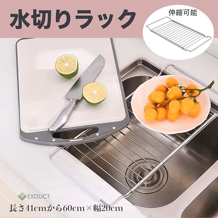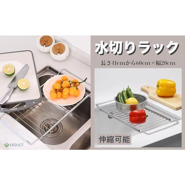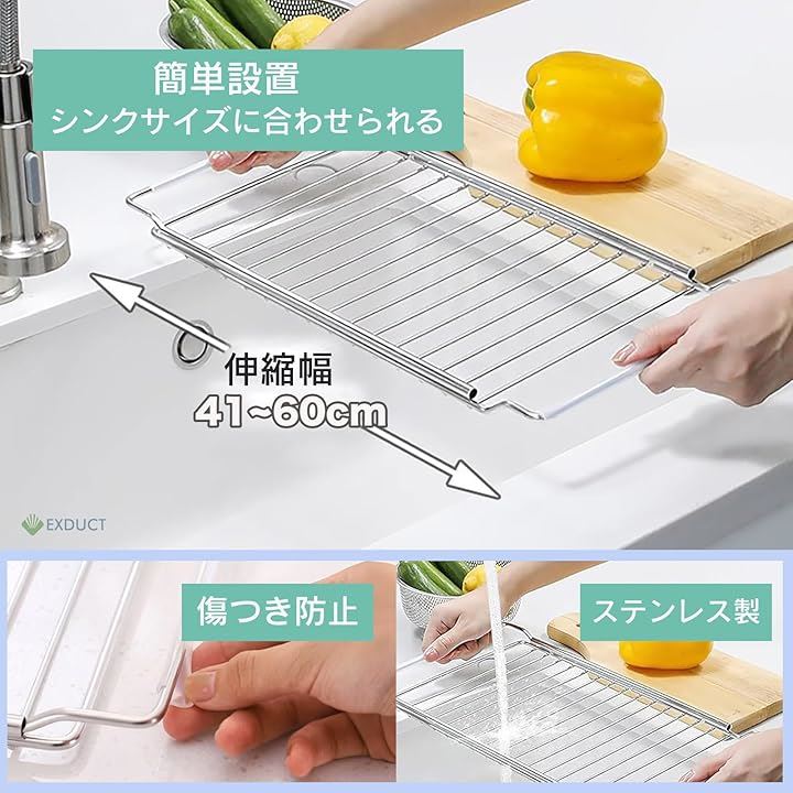 水切りラック 水切りかご 水切りプレート スライド シンク ステンレス 伸縮 41-60cm キッチン