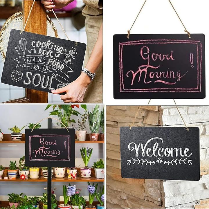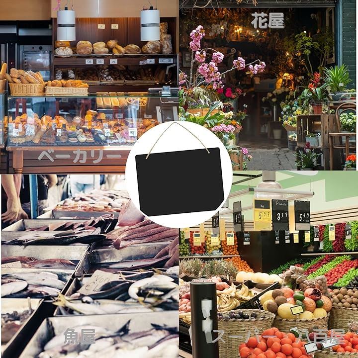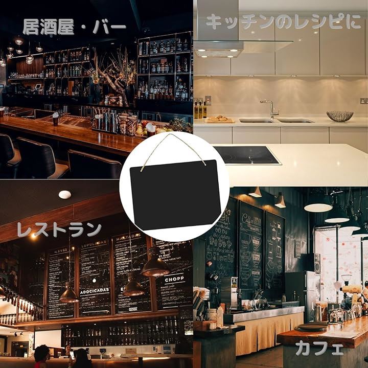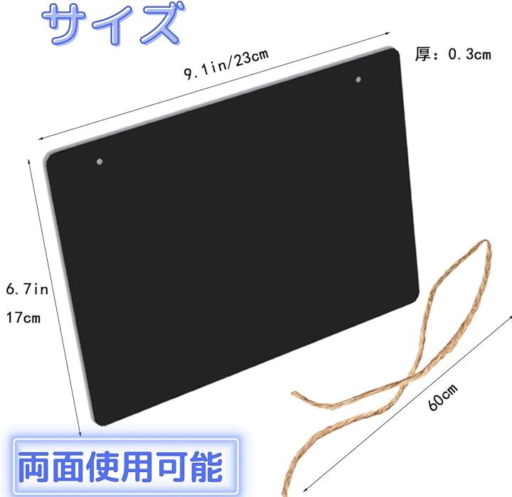 黒板 ブラックボード 2枚セット 両面使用可 23cmx17cm 麻ひも 付属で 吊り下げ可能 看板 掲示板 メニューボード 等に