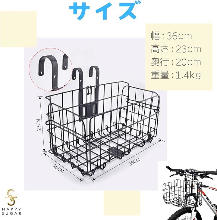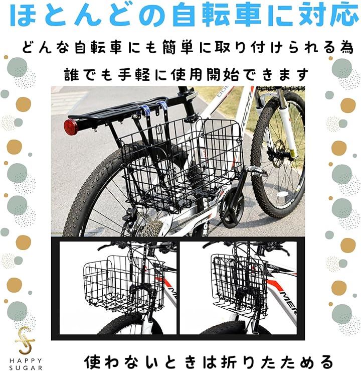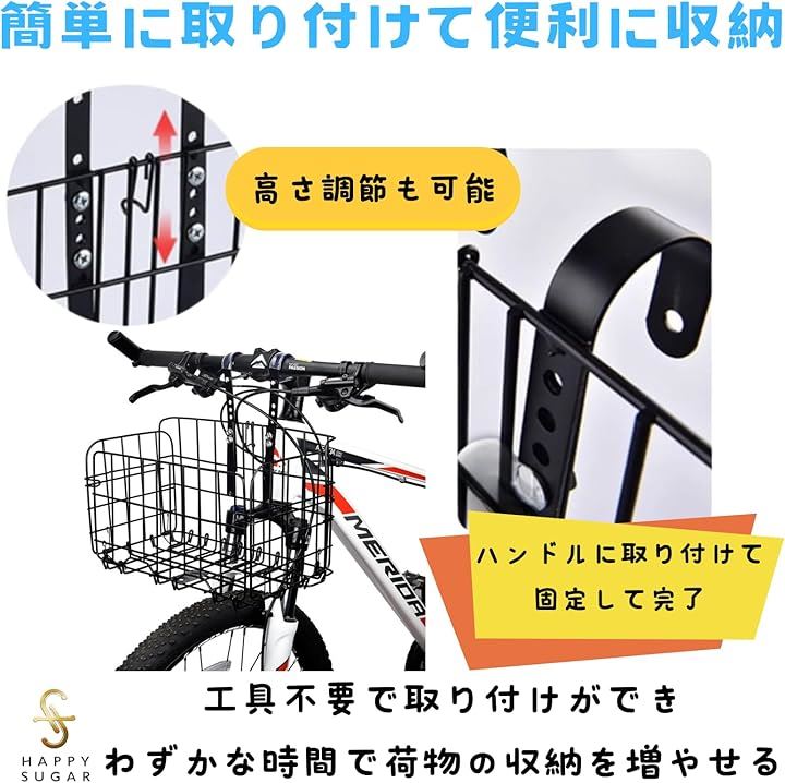 自転車 折りたたみカゴ かご 前カゴ 自転車カゴ クロスバイク マウンテンバイク 後付け簡単 大容量 高さ調整 耐荷重20kg
