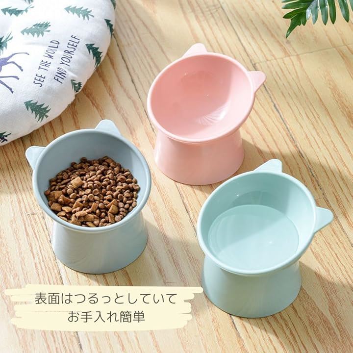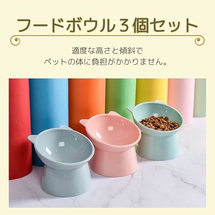 ペット フード ボウル 食器 餌 お水 入れ 皿 3色 セット 高架 犬 猫 食べやすい 斜め