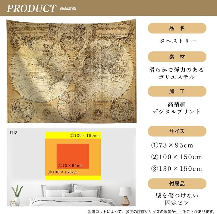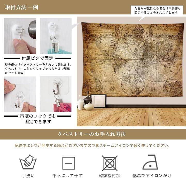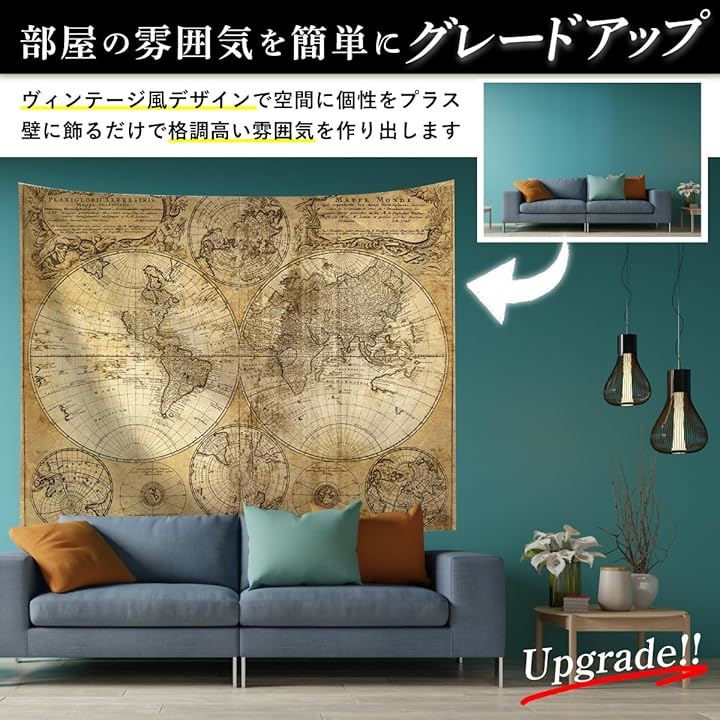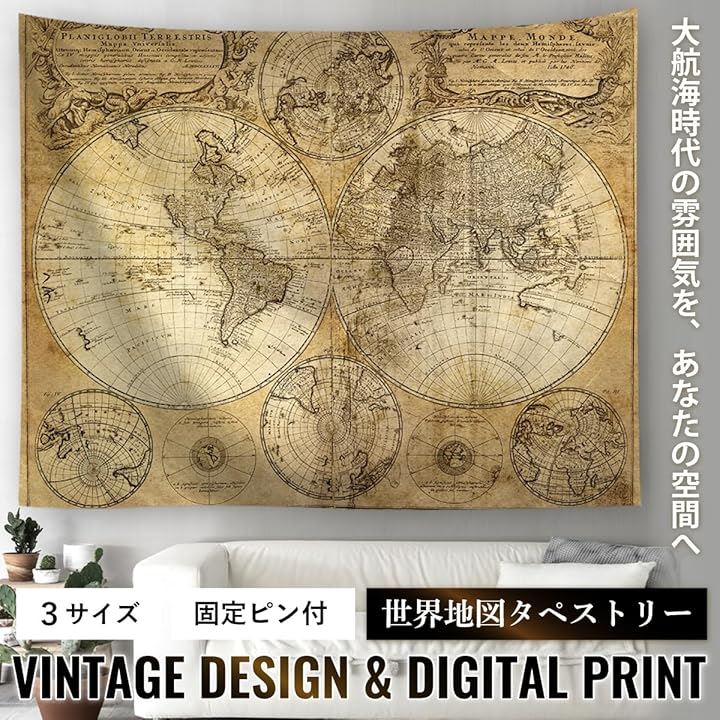 世界地図 タペストリー ポスター アンティーク 雑貨 大判 レトロ ビンテージ
