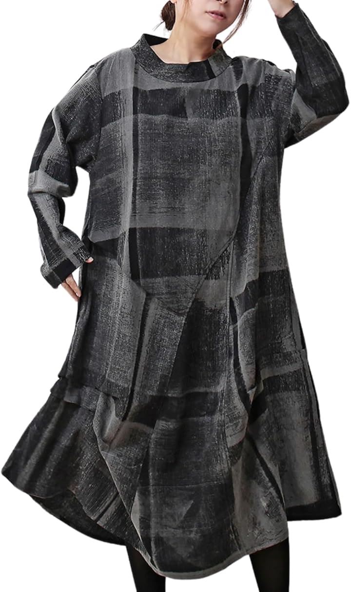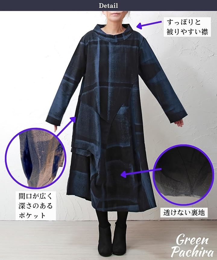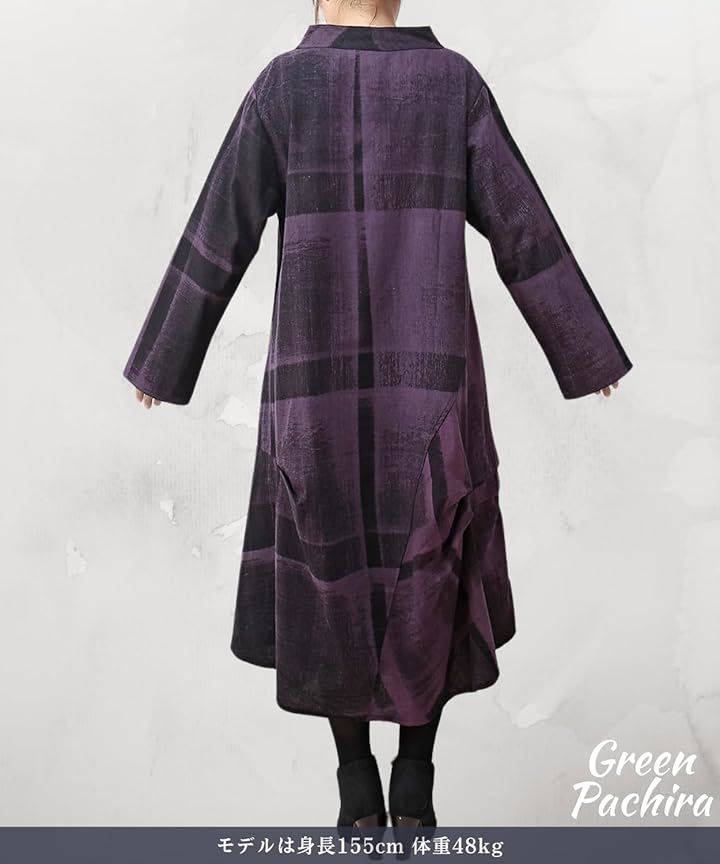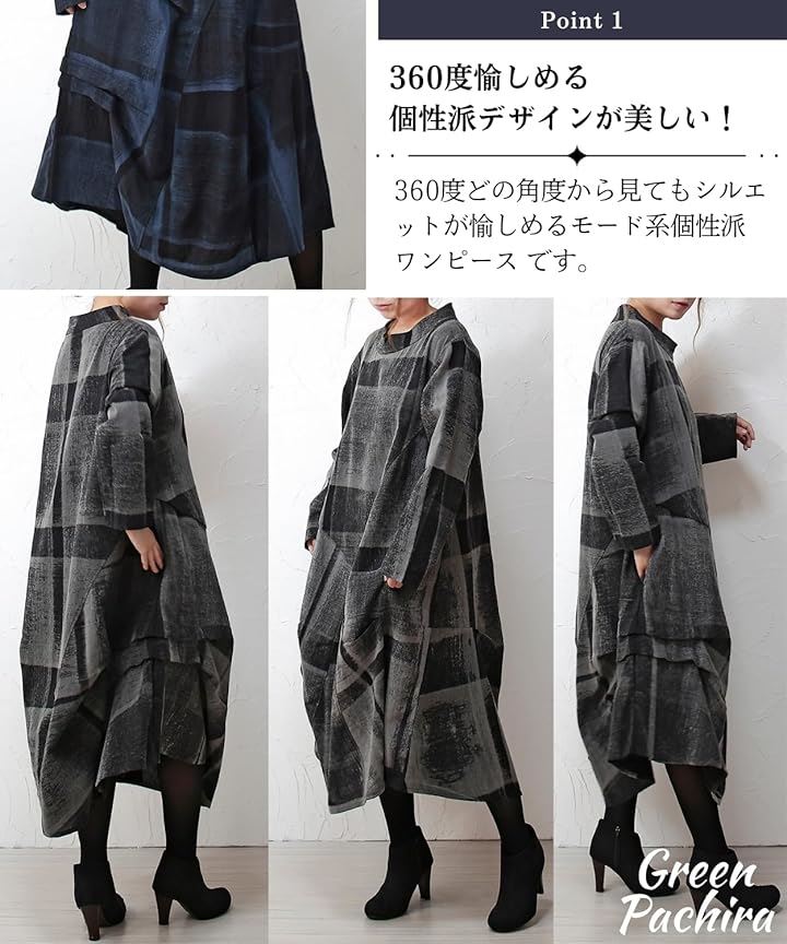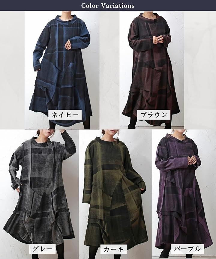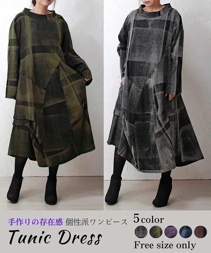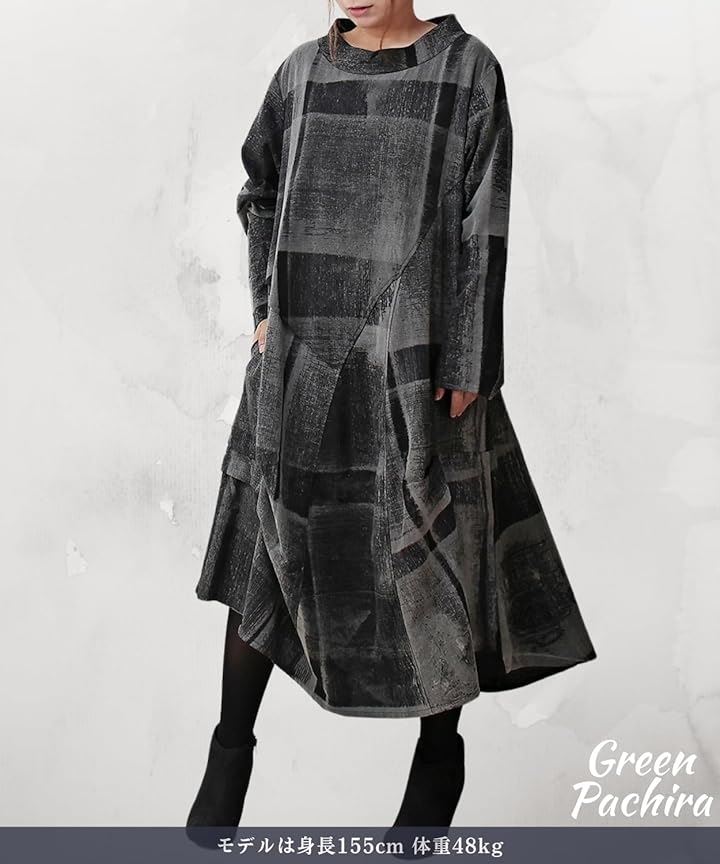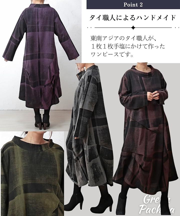 [グリーンパキラ] ワンピース ゆったり おしゃれ 秋 冬 レディース 大人ワンピース 上品 個性派 痩せて見える 長袖 フリーサイズ ロング 着痩せ 体型カバー 婦人服 シニア 低身長 エスニック |