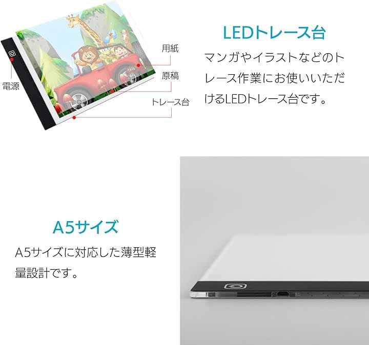 LED トレース台 A5サイズ 薄型 USB給電 3段階調光
