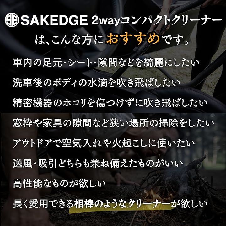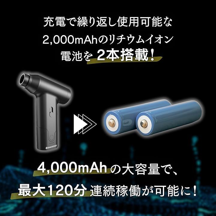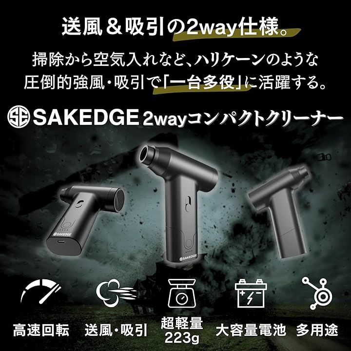 2wayコンパクトクリーナー 42m/sの強風&吸引 アタッチメント6種ブラシ 3種 ポーチ付き Type-C充電 コードレス