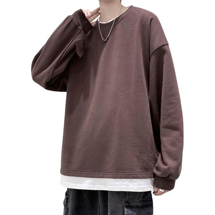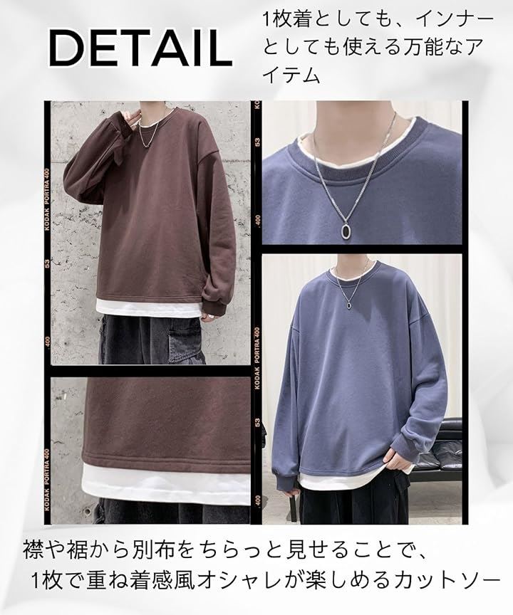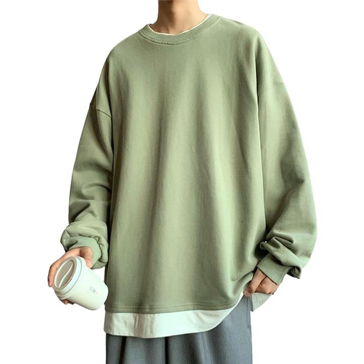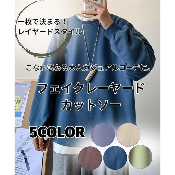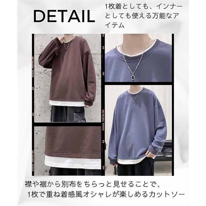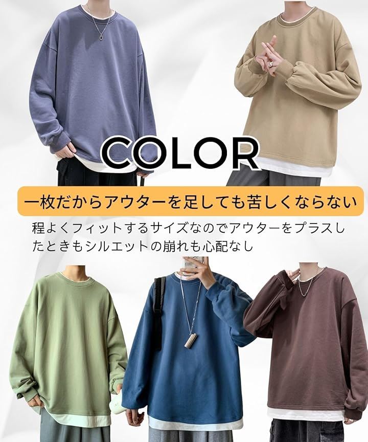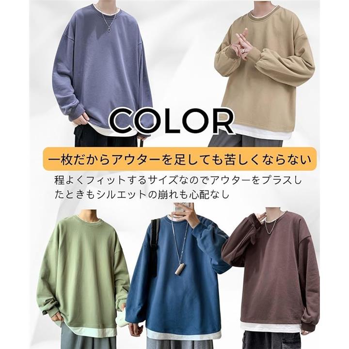 メンズ トレーナー 長袖 トップス フェイクレイヤード 重ね着風 スウェット 無地 シンプル カジュアル 秋冬 おしゃれ プルオーバー コーデ