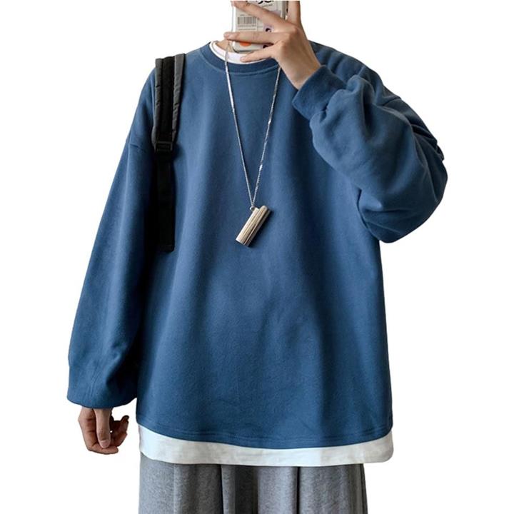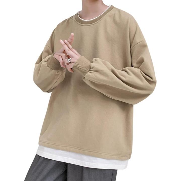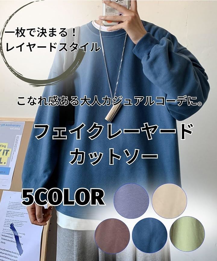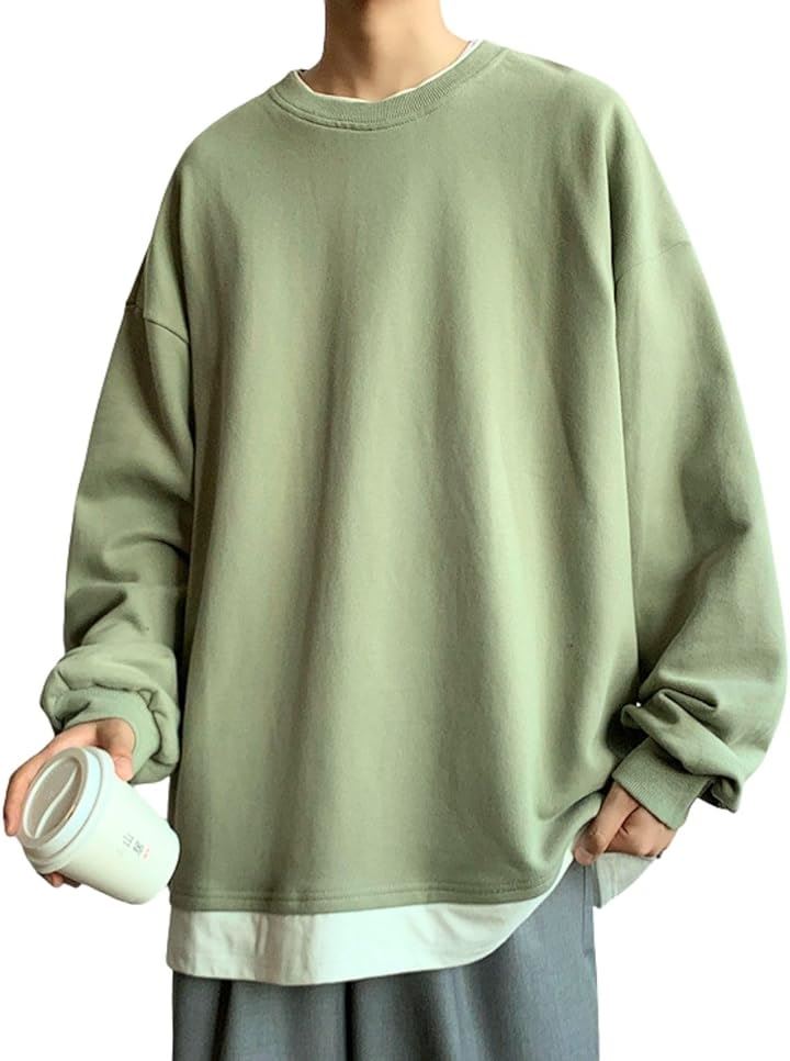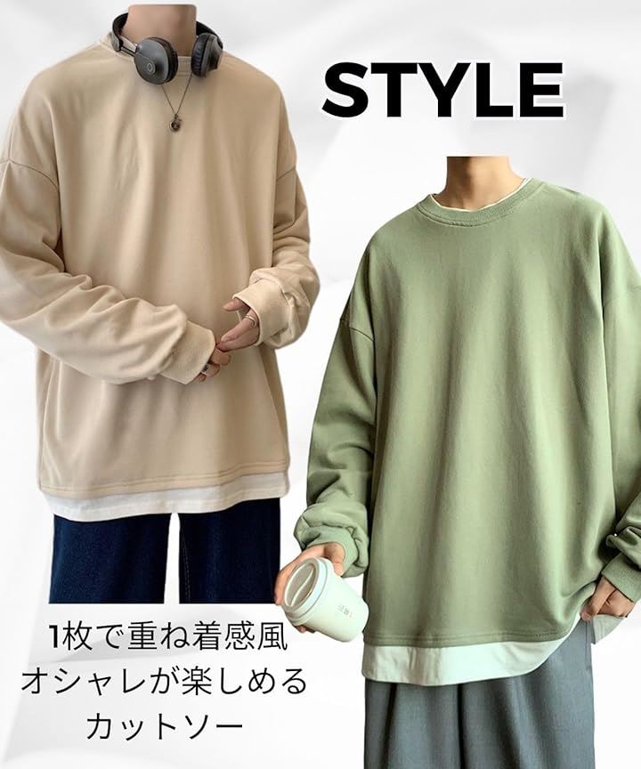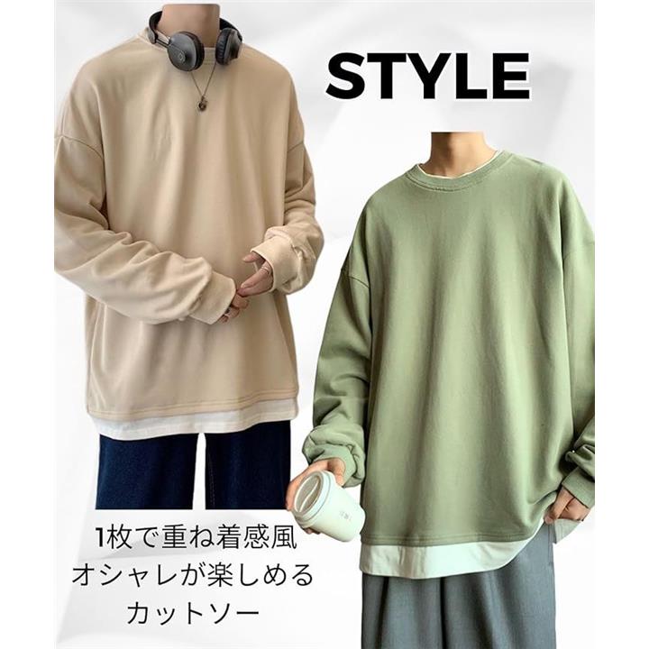 メンズ トレーナー 長袖 トップス フェイクレイヤード 重ね着風 スウェット 無地 シンプル カジュアル 秋冬 おしゃれ プルオーバー コーデ