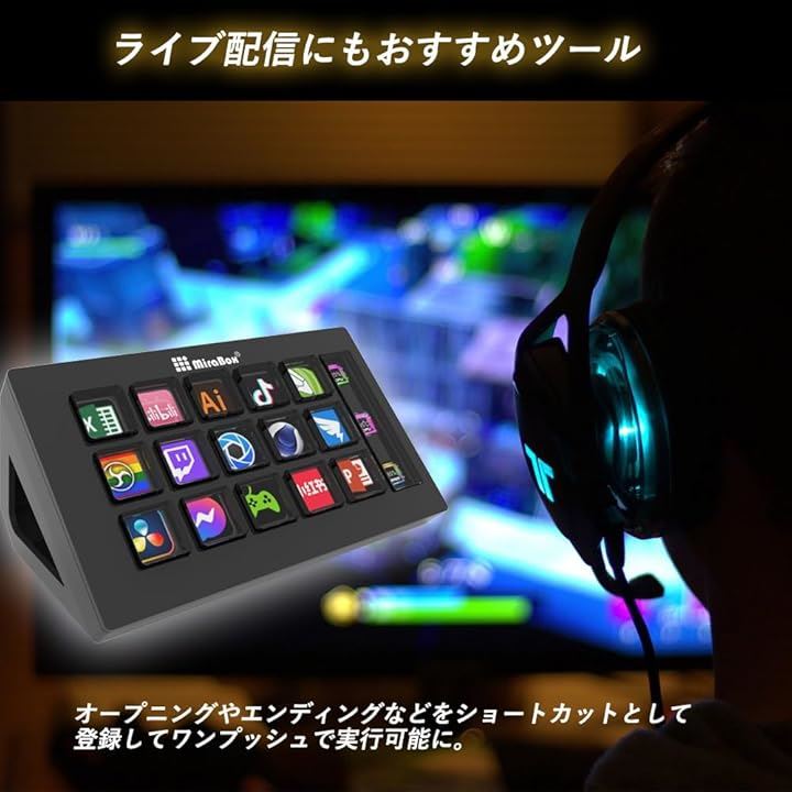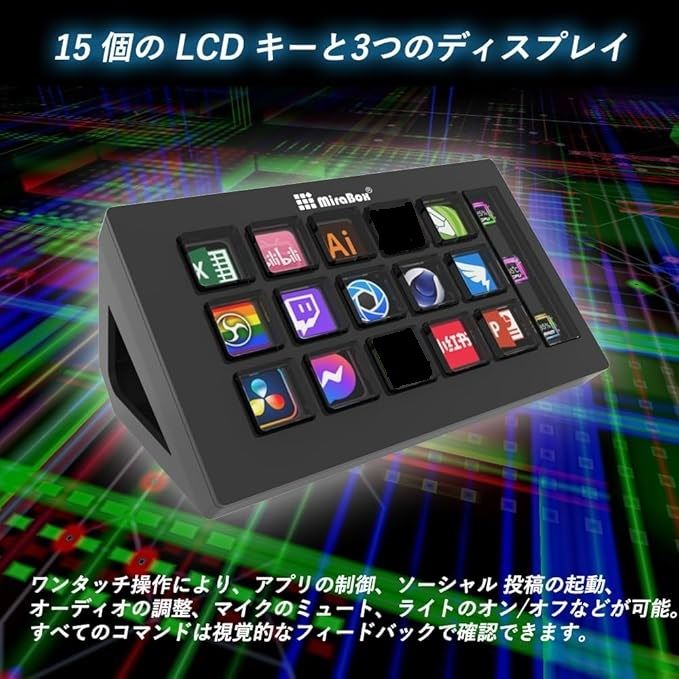 ショートカットキー 15個のカスタムキー MiraBox MBox 15キー配列 配信者向けデバイス 左手デバイス ショートカットリモート 片手キーボード Windows 10/macOS 対応 作業効率向上
