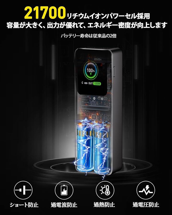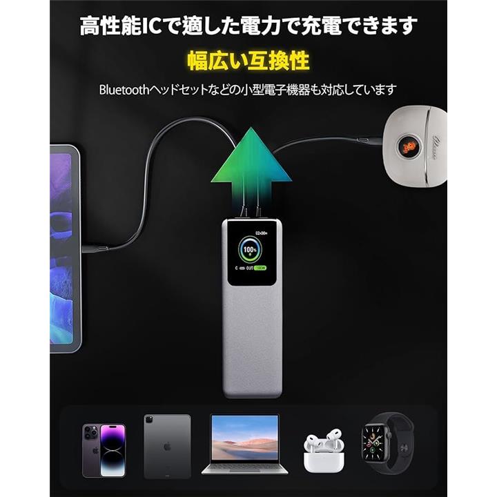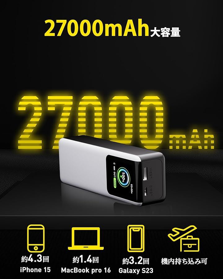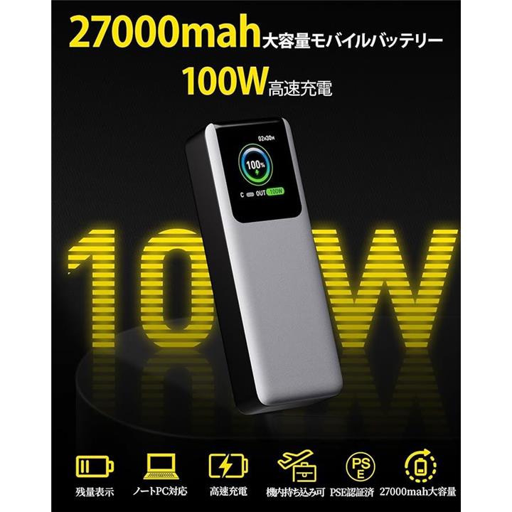 モバイルバッテリー 大容量 急速充電 27000mah 100W高出力 PD3.0 低電流モード TFTディスプレイ 残量表示 2ポート パススルー iPhone/Android/ノートPC対応 旅行/出張/アウトドア/キャンプ 日本語取扱説明書付き