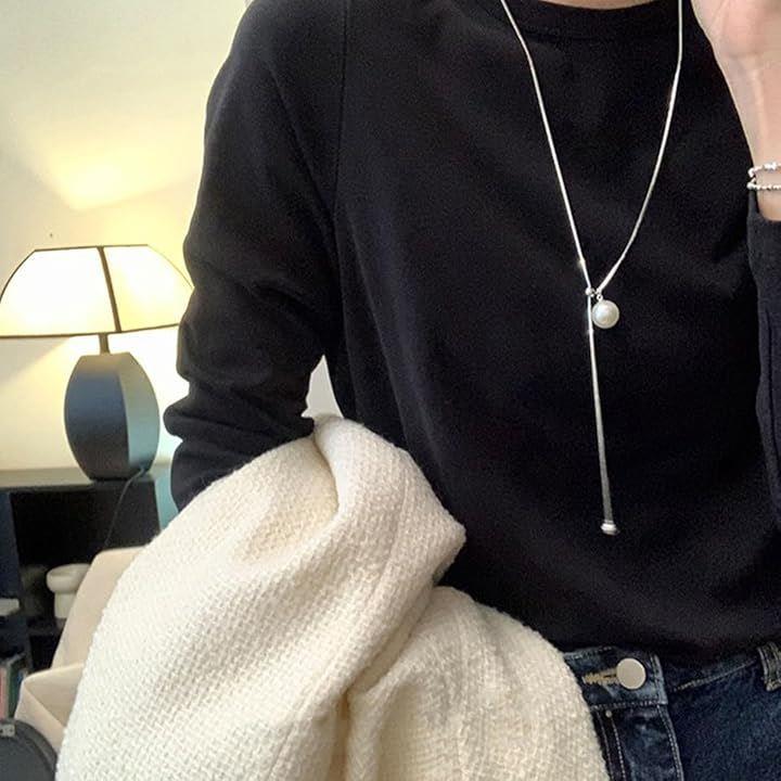 パールネックレス Y字モチーフ 前下がり 上品 フォーマル 存在感あり お洒落 ロングネックレス メタルボール レディース