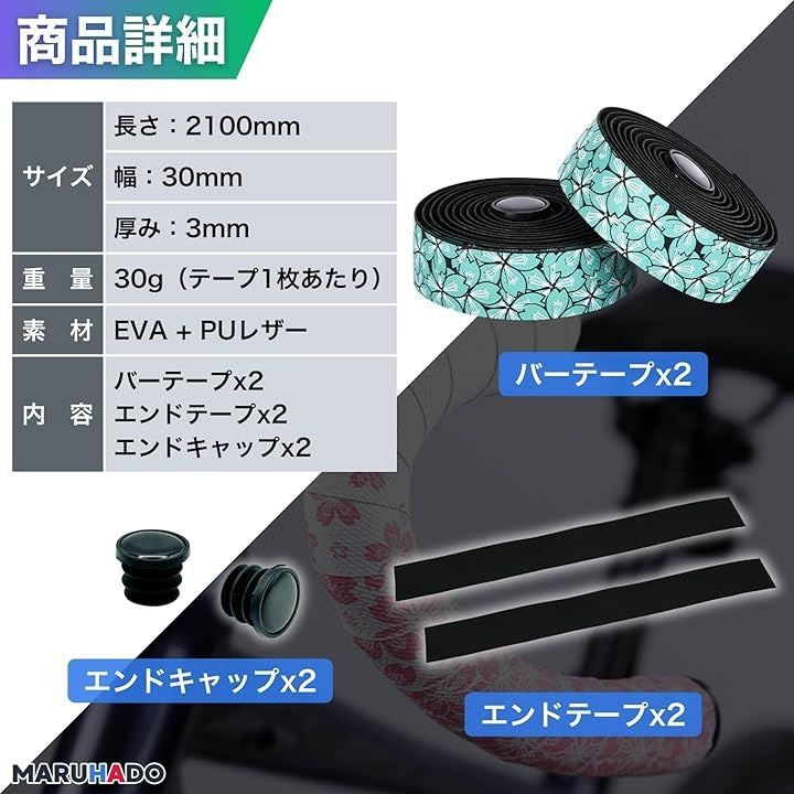 互換品 自転車 バーテープ ロードバイク ドロップハンドルバーテープ 左右セット 滑り止め エンドプラグ付き 桜柄