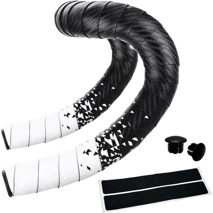 互換品 自転車 バーテープ ロードバイク ドロップハンドルバーテープ 左右セット 滑り止め エンドプラグ付き 幾何学模様