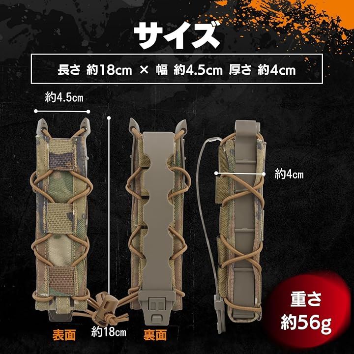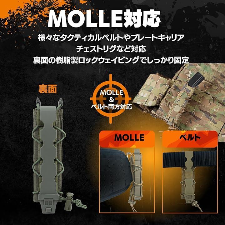 「MOLLEとベルトに対応」MOLLE(モール)付きのチェストリグやプレキャリでも普通のベルトにも取付け可能です