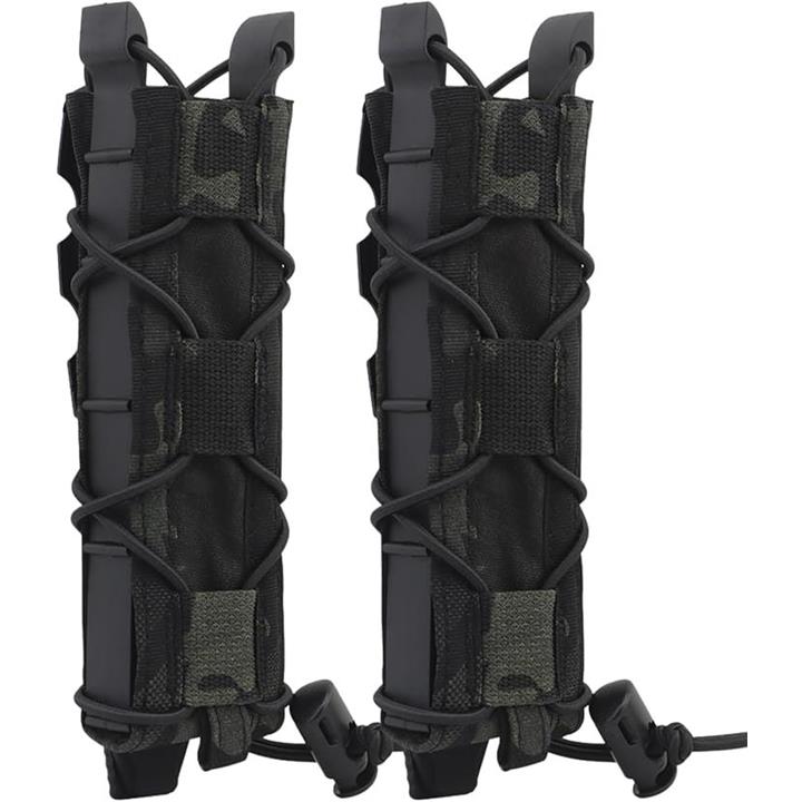 MILQUEST マガジンポーチ マグポーチ 「TACOスタイル」 MP5 9mmロングマガジン デザートイーグル 対応 MOLLE ベルト 両方対応 サバゲー (ブラック迷彩2個セット) |