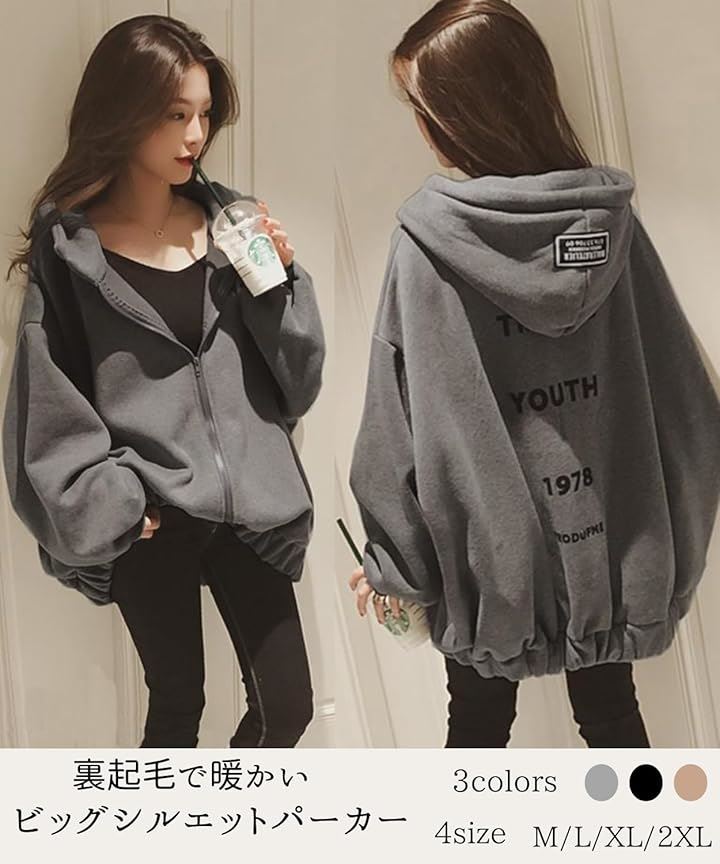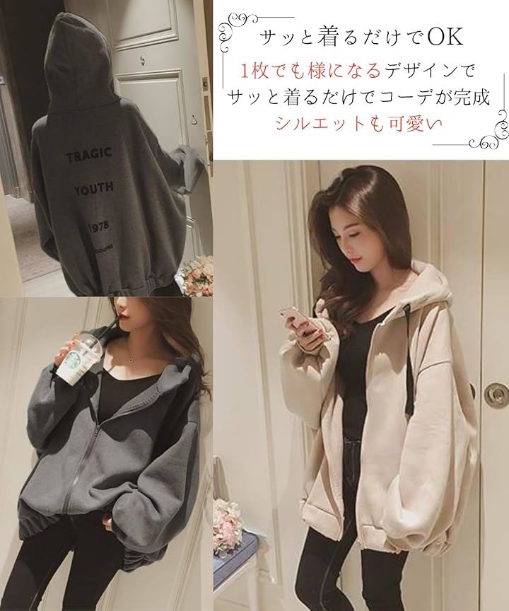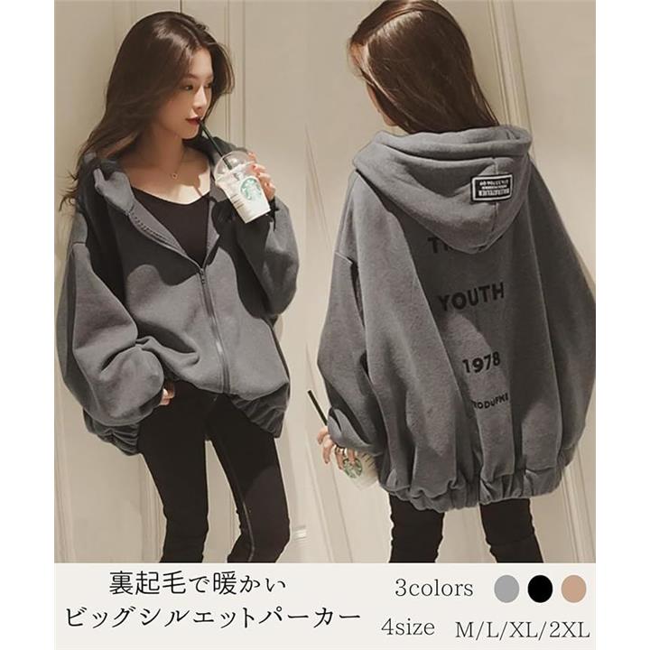 [Dep Club] トレンドゆる感 ジップパーカー レディース 裏起毛 オーバーサイズ アウター ビッグシルエット トップス おしゃれ ゆったり 上着 b系 厚手 長袖 韓国 秋冬 |