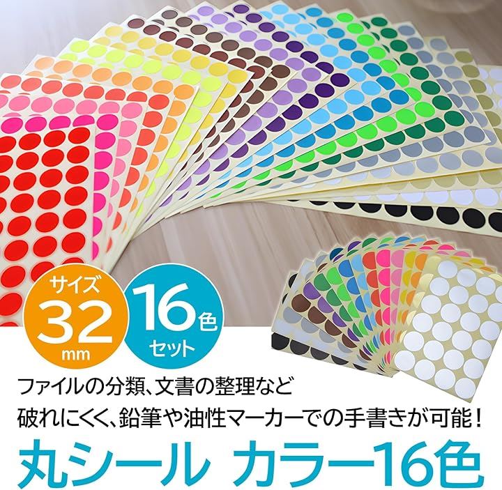 丸シール 16色 カラー タックシール ラベル