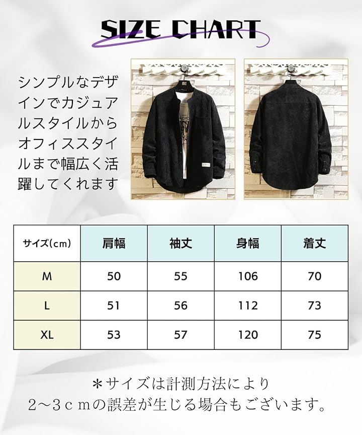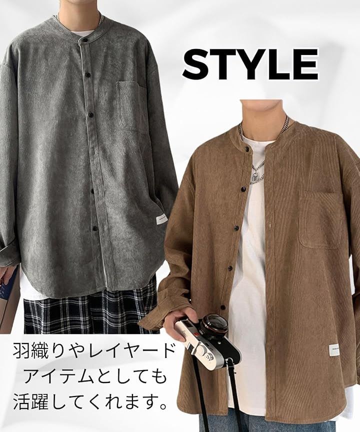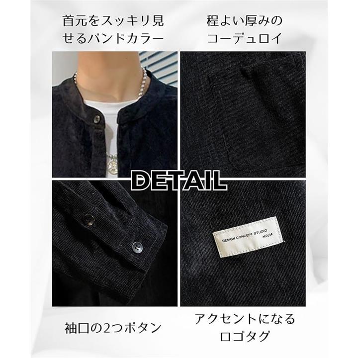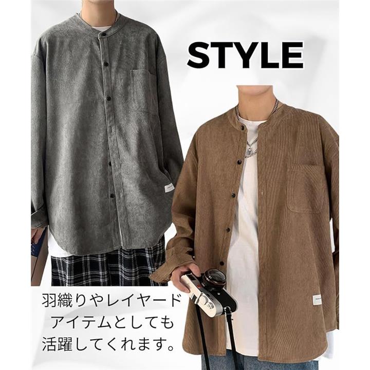 トレンドx定番 コーデュロイ スタンドカラーシャツ メンズ バンドカラーシャツ コーデュロイシャツ 羽織 トップス 長袖 秋 秋冬 カジュアル 秋服