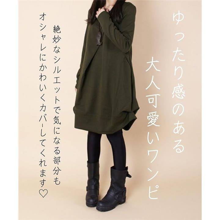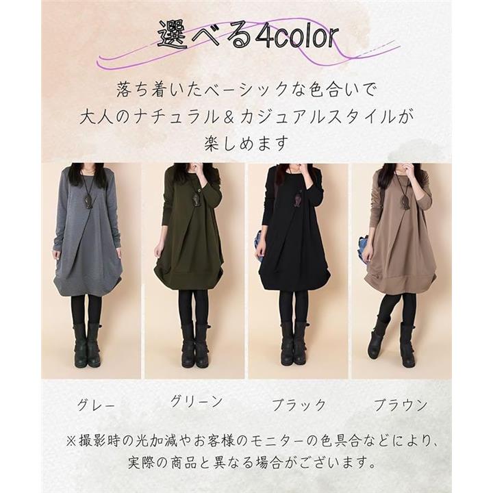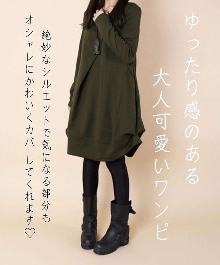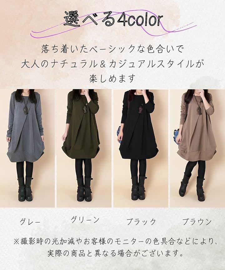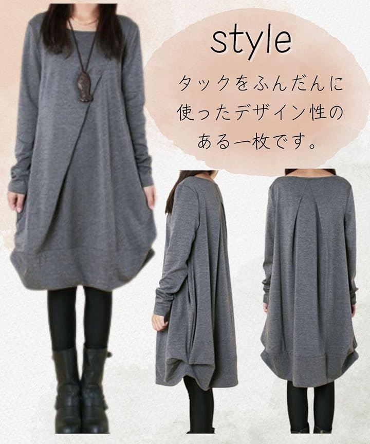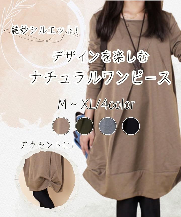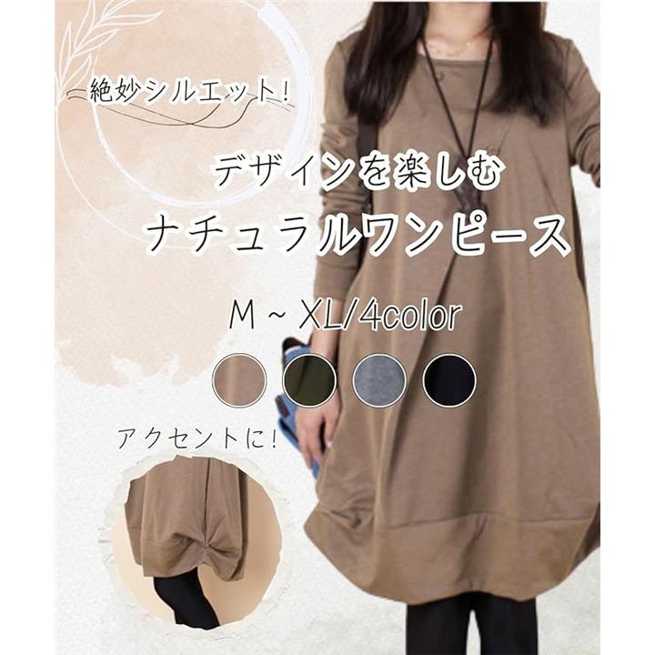 [Four leaf] 「かわいいx着痩せ」 カジュアル ワンピース レディース ゆったり 秋冬 膝丈 長袖 体型カバー デザイン 切替 シンプル バルーン チュニック ワンピ ファッション |
