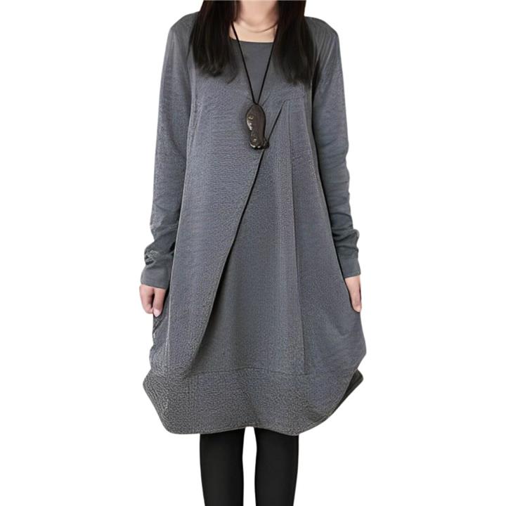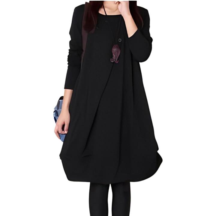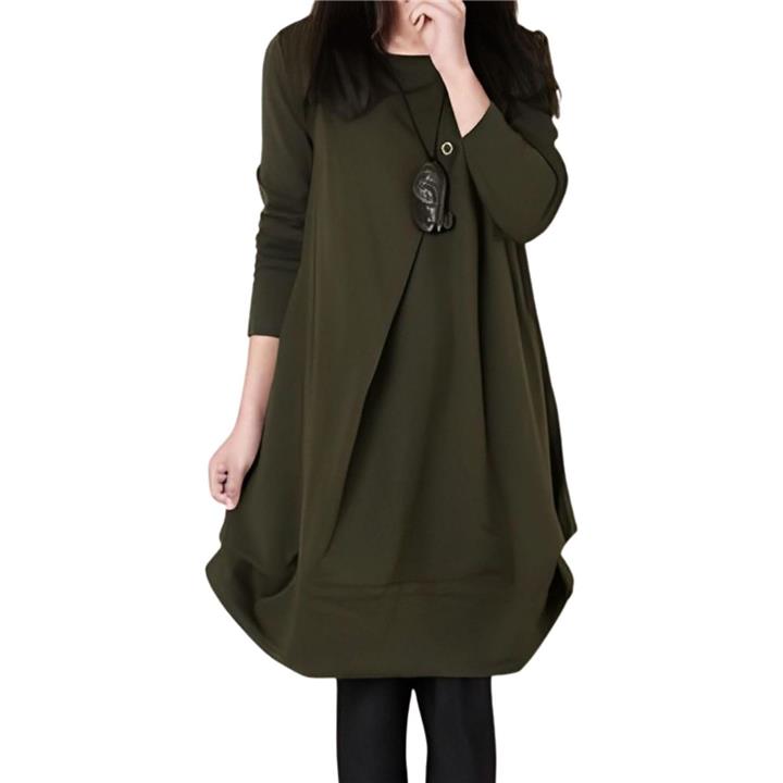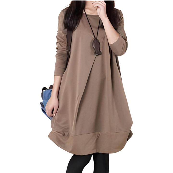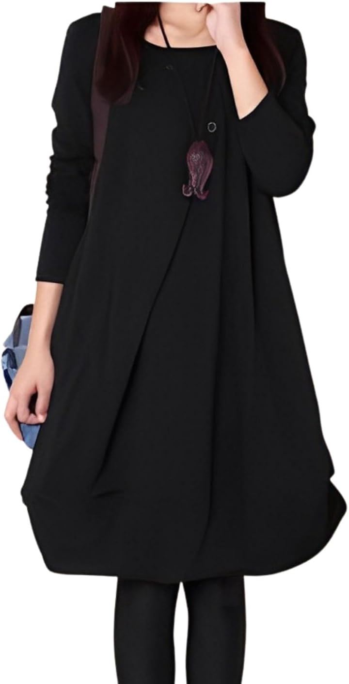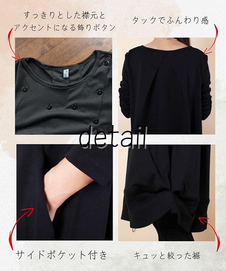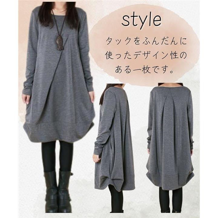 [Four leaf] 「かわいいx着痩せ」 カジュアル ワンピース レディース ゆったり 秋冬 膝丈 長袖 体型カバー デザイン 切替 シンプル バルーン チュニック ワンピ ファッション |