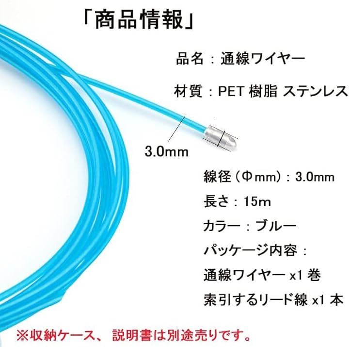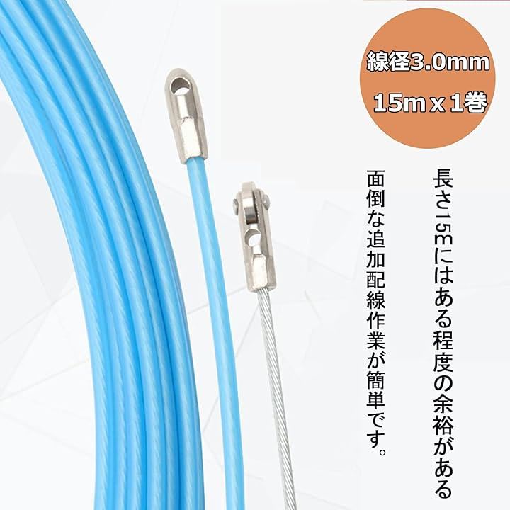 通線ワイヤー15m ロッド径 3.0mm 配線通し cd管 電線通しワイヤー 入線専用ワイヤー 索引するリード線付き 通線工具 CD管・PF管専用 スリムヘッドで細径管も通線OK