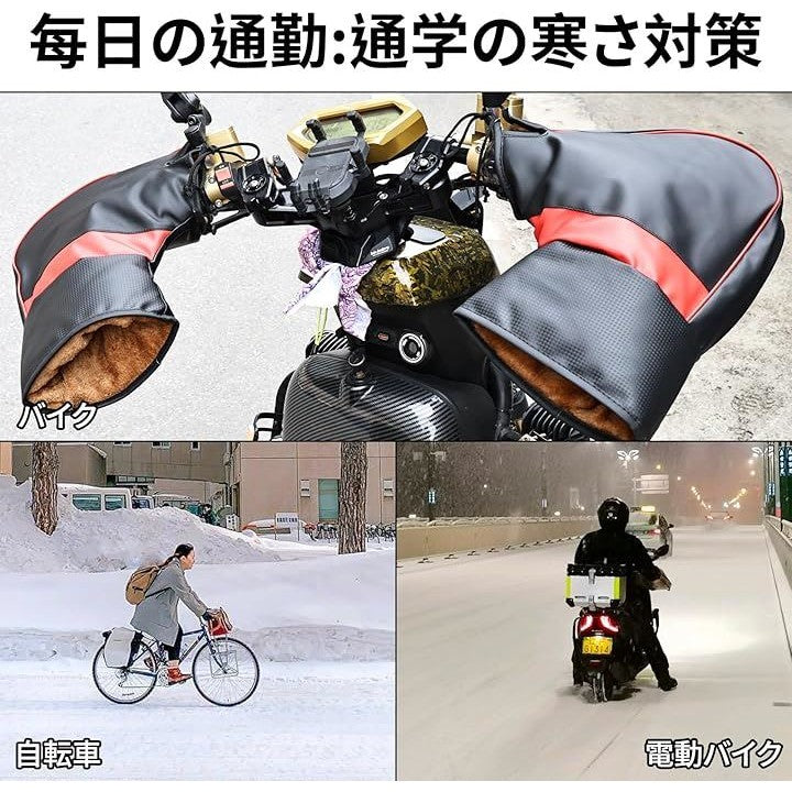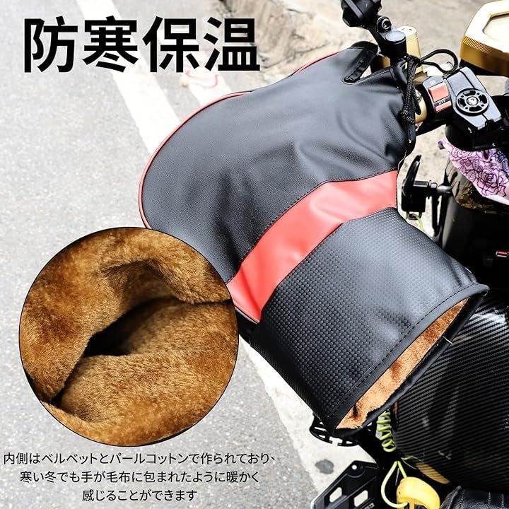 バイク用ハンドルカバー 防風 防水 保温性 汎用ハンドルカバー 自転車 YAMAHA HONDA SUZUKI KAWASAKI pcx ninja250 cbr250rr などに適用 ハンドルウォーマー秋冬 防寒対策 防寒具