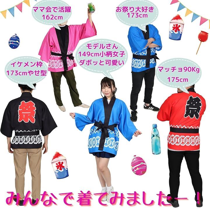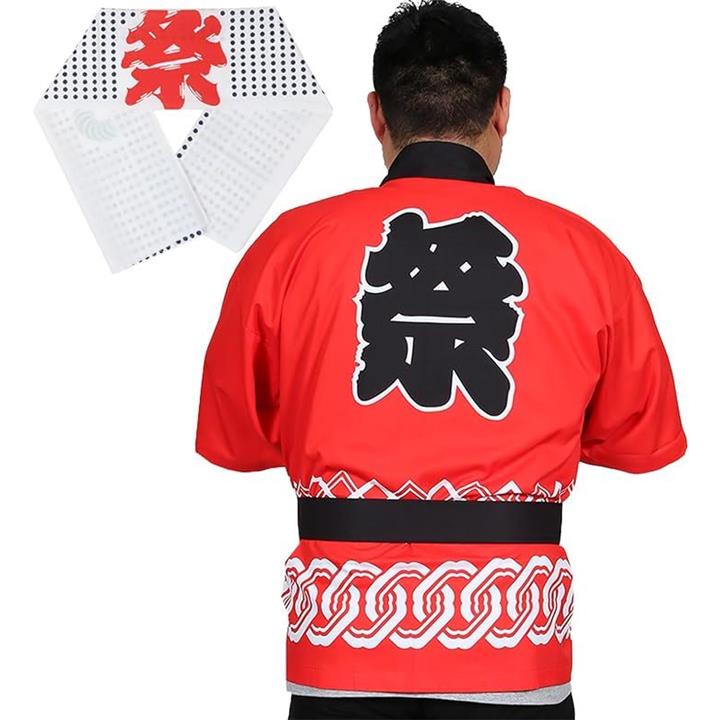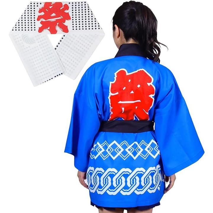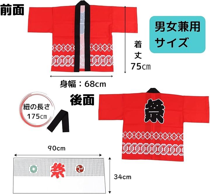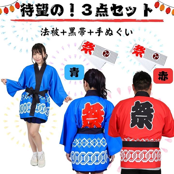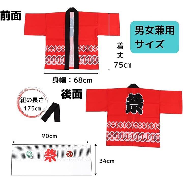 お祭り法被3点セット 大人用 はっぴ 腰ひも 手ぬぐい 男女兼用 つなぎ柄 イベント 行事 おそろい コーデ 男性 女性 衣装