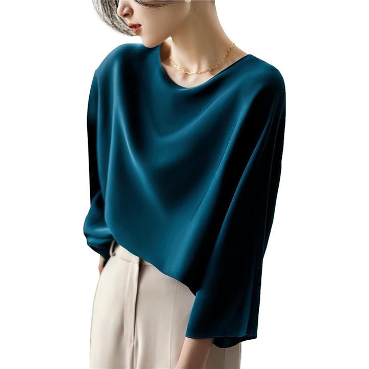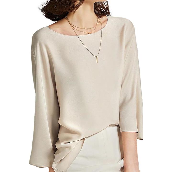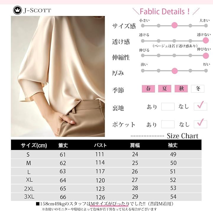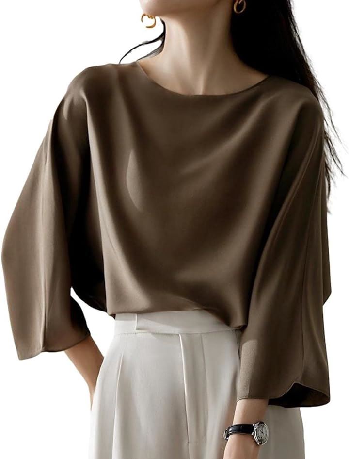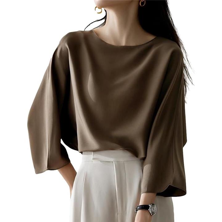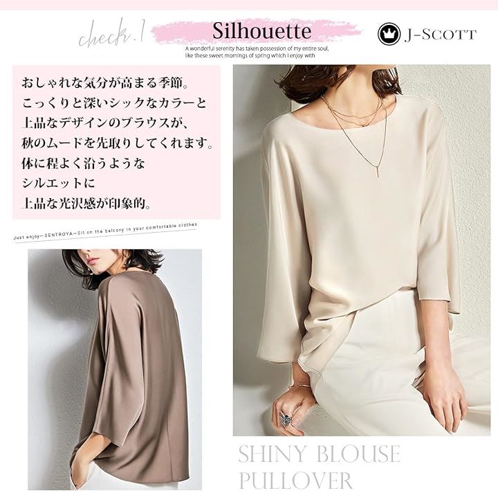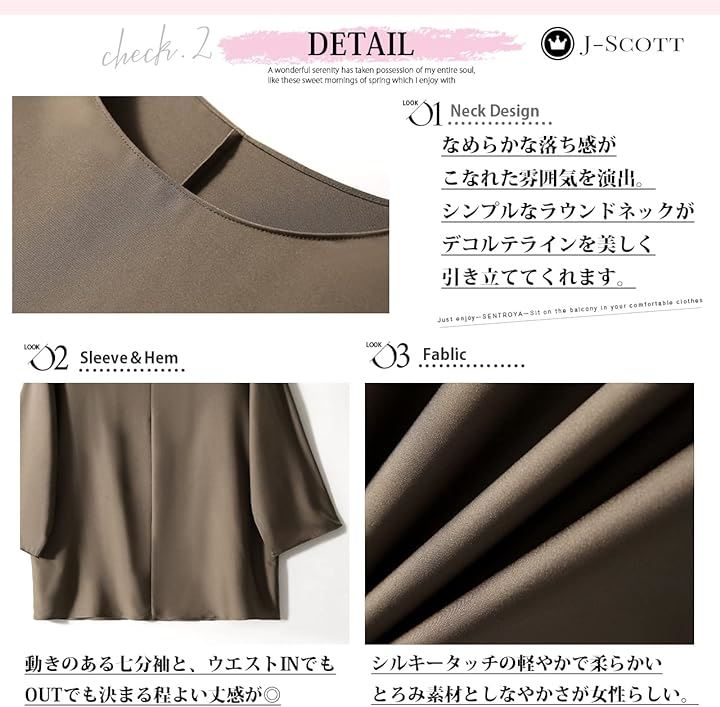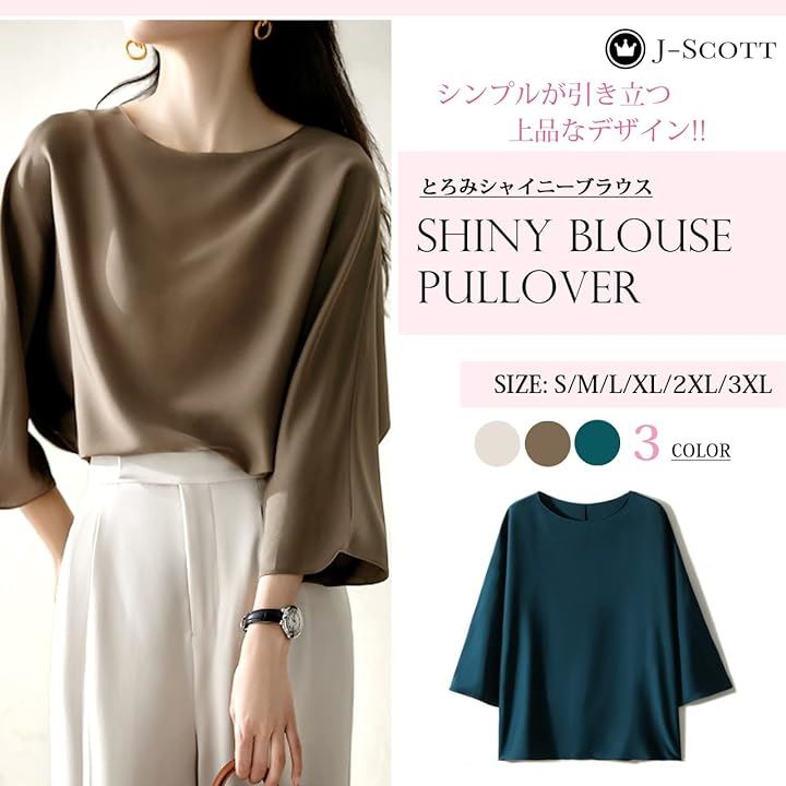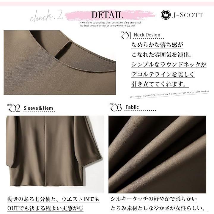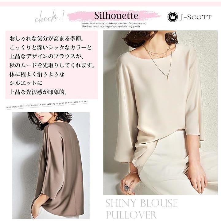 [J-Scott] とろみブラウス レディース 七分袖 ラウンドネック シルキータッチ 無地 プルオーバー エレガント サテン風 ゆったり トップスレディース 上品 エレカジ 辛口 JS12 |