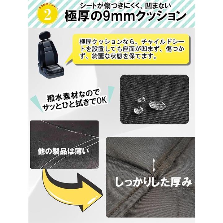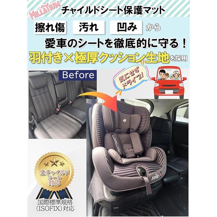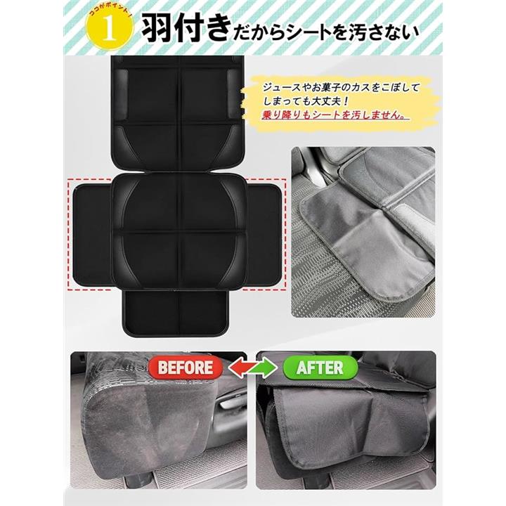 チャイルドシート 保護マット チャイルドシートカバー 羽付き・極厚マット isofix対応 保育士推薦 黒