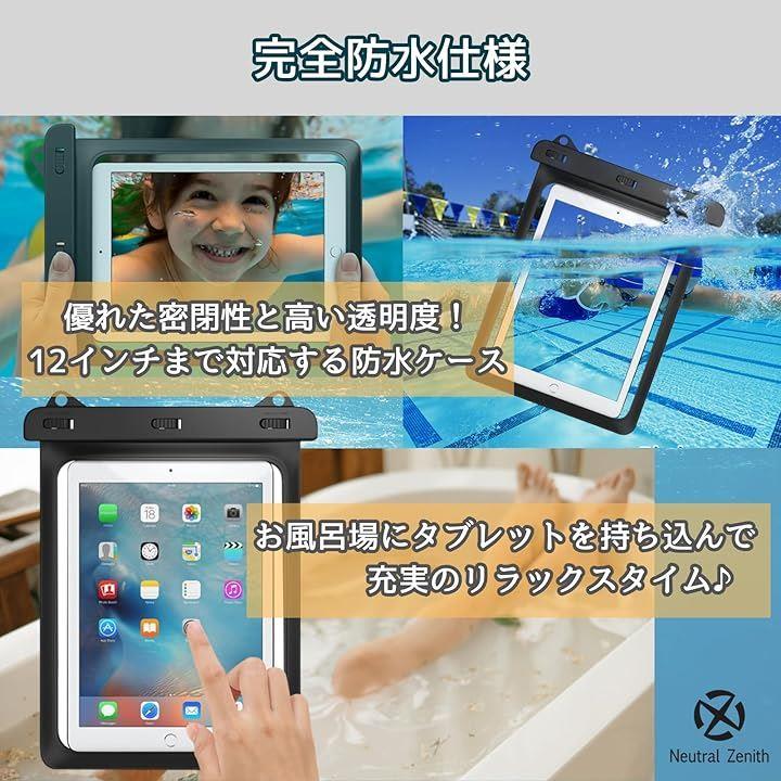 タブレット 防水ケース 12インチ iPad Pro mini Air Kindle 対応 透明防水カバー お風呂 プール 海水浴