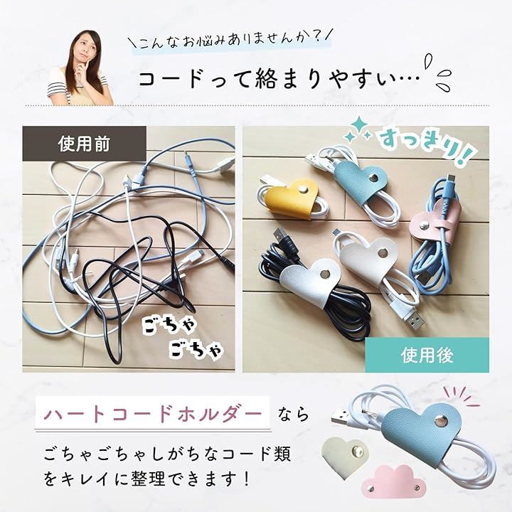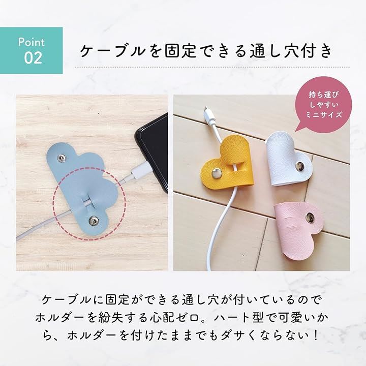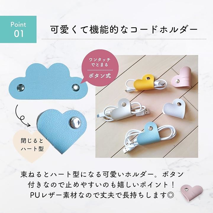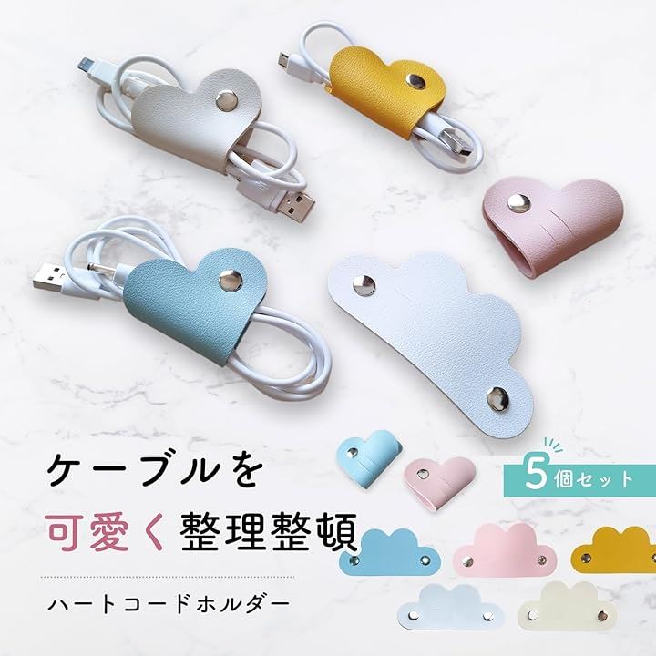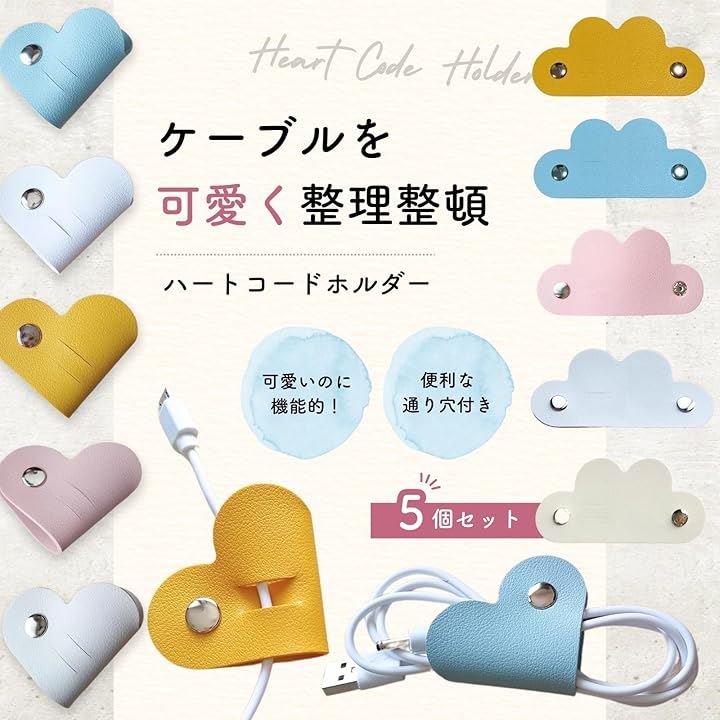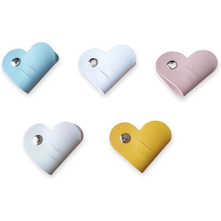 コードホルダー 5個入り ハート デスク周り 便利グッズ コードまとめる 配線 整理 コードクリップ ケーブルクリップ イヤホン 収納