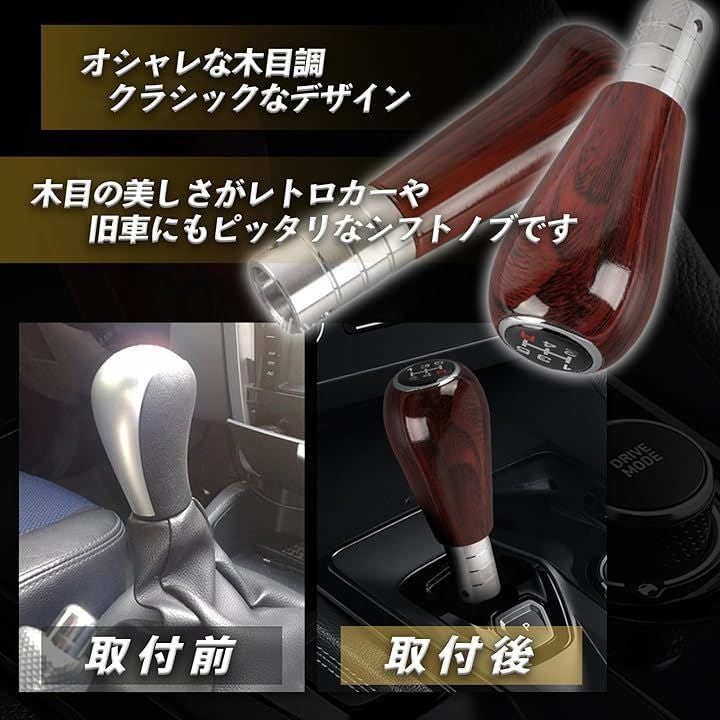 シフトノブ MT ウッド 5速 木目 旧車 レトロカー 車内カスタム 耐久性 汎用