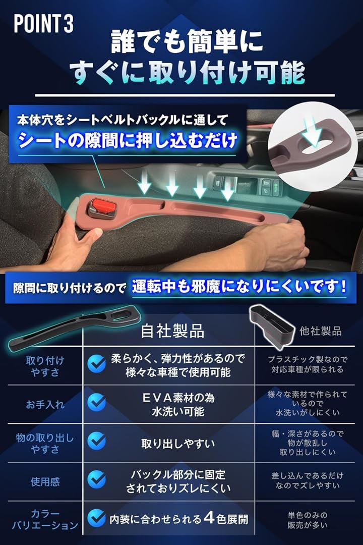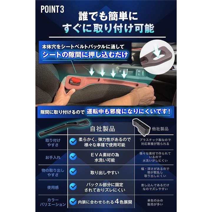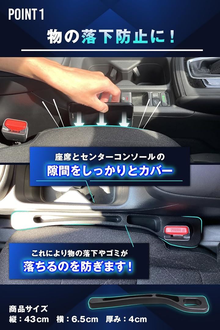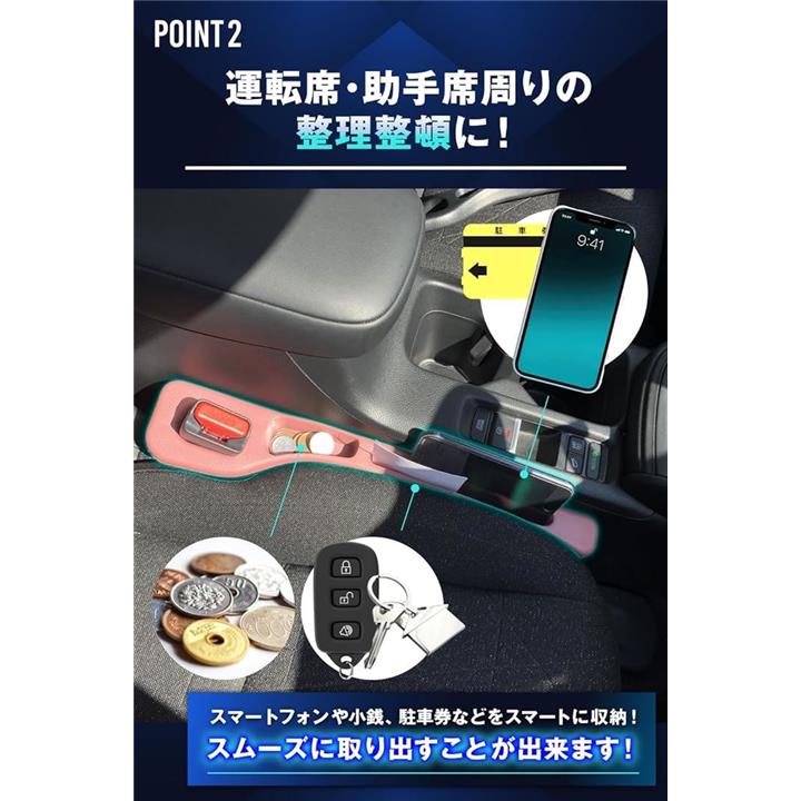 車 隙間埋めクッション 収納 便利 幅広い車種に対応 2本入り 落下防止 取り付け簡単 センターコンソール