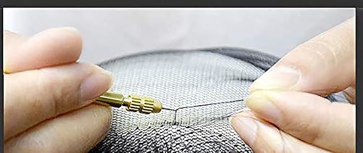 一つ一つ手植えでウィッグでメッシュ網に編みます。
