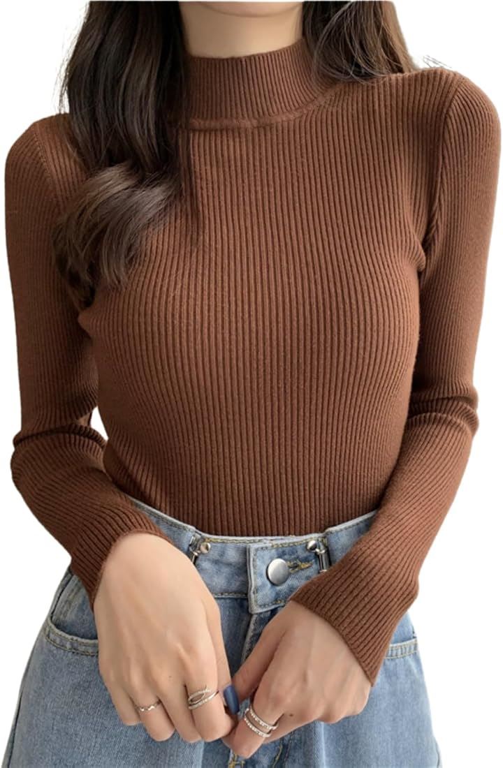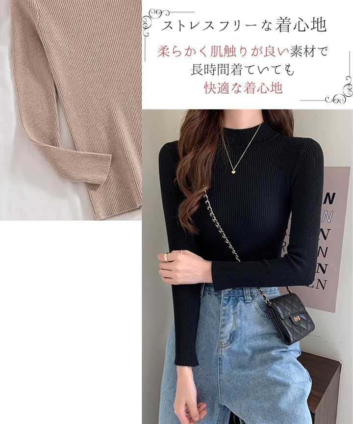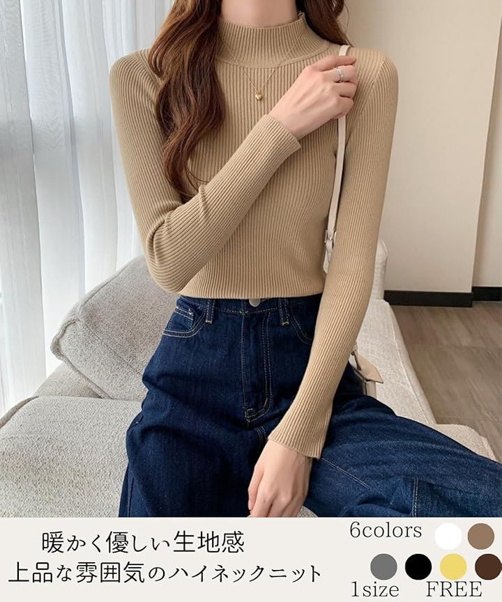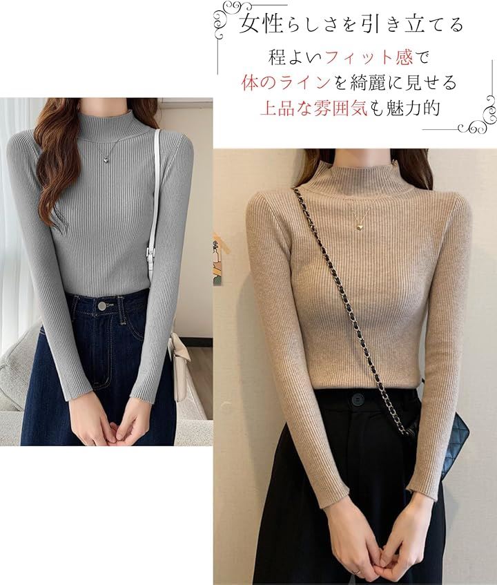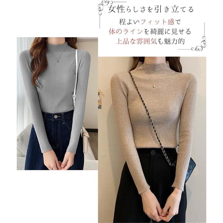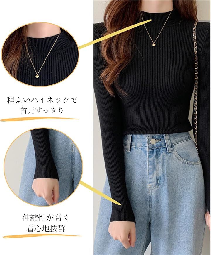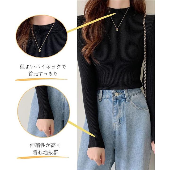 タートルネック レディース 薄手 着痩せ リブニット ハイネック インナー セーター 長袖 重ね着 春 秋 冬 春秋 服 春服