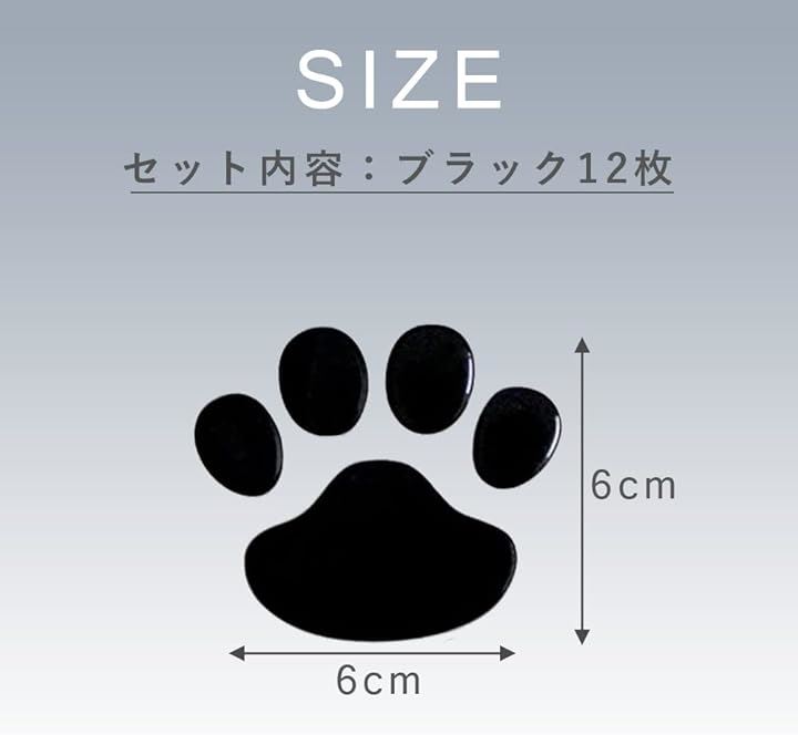 肉球ステッカー カーステッカー デカール エンブレム アニマル 犬 猫 足跡 車 立体 3D ドレスアップ 12枚 セット
