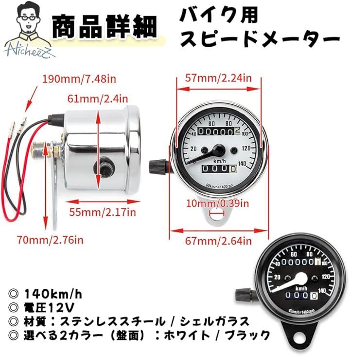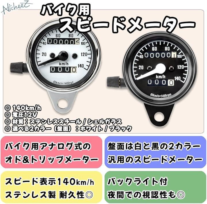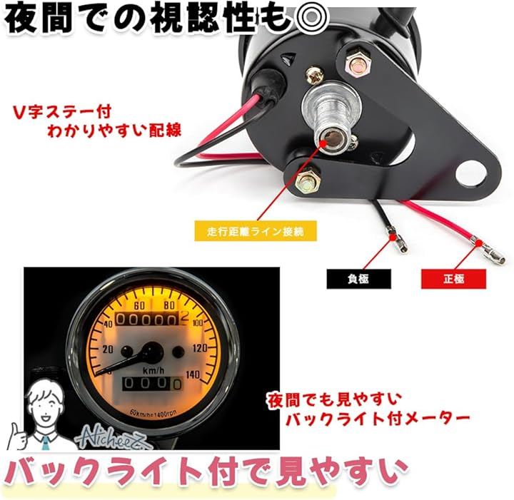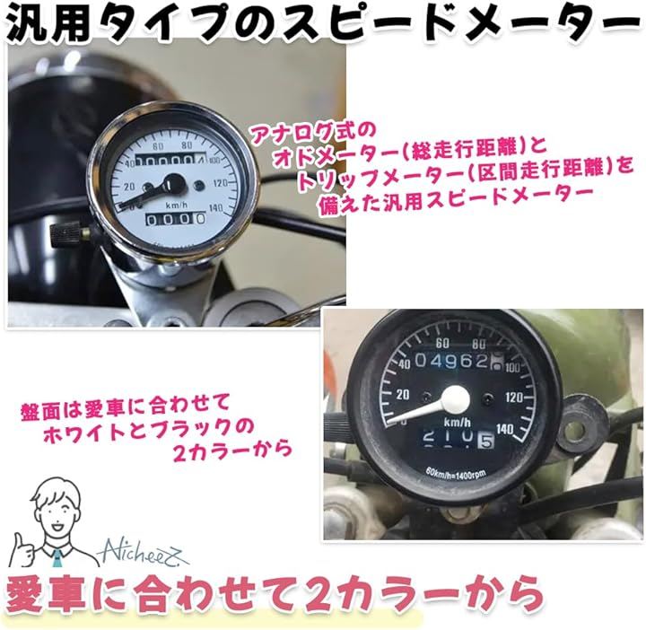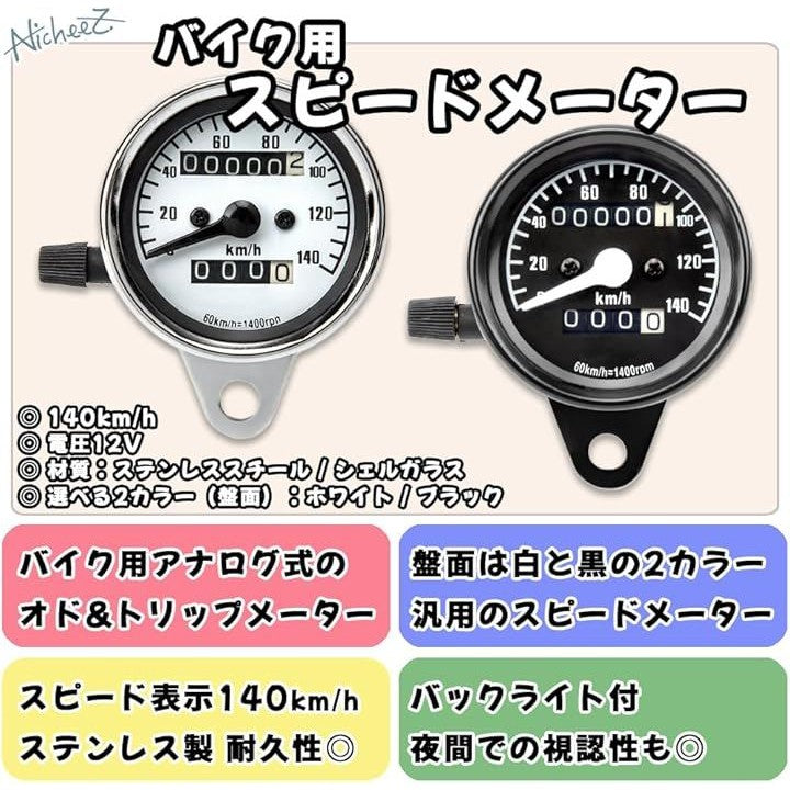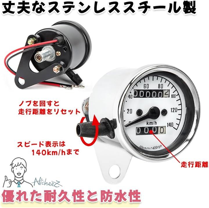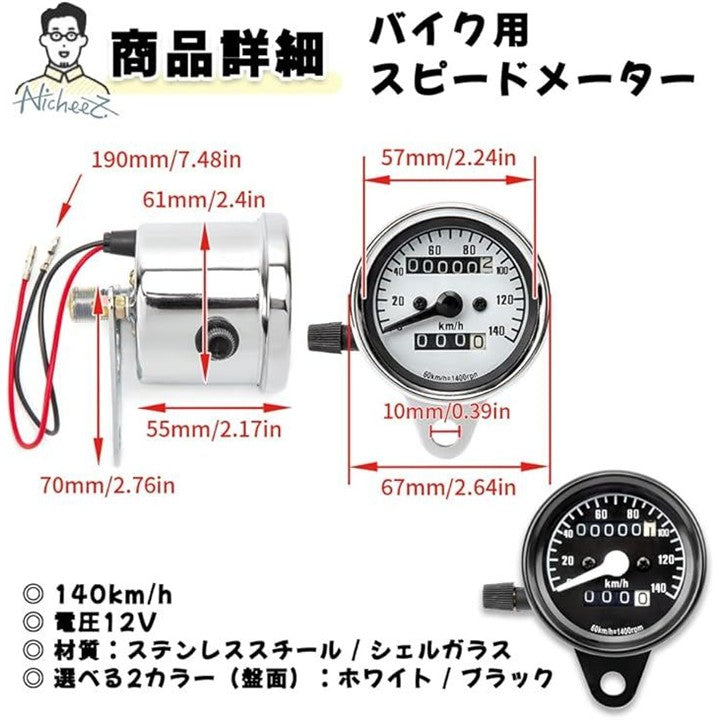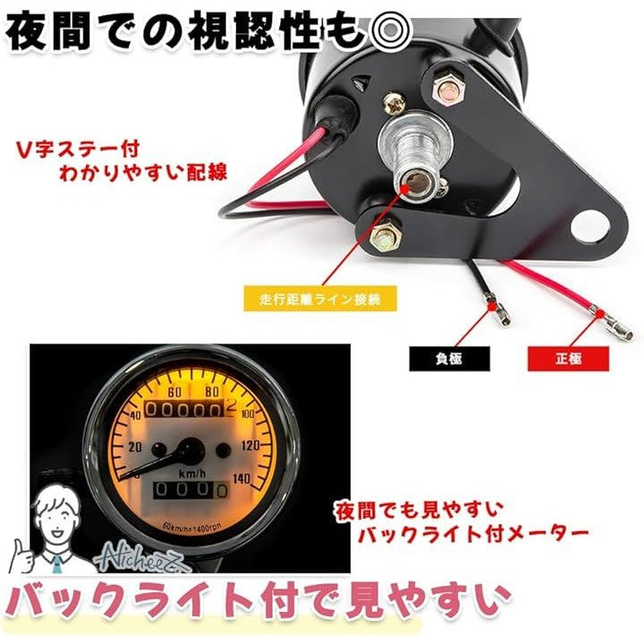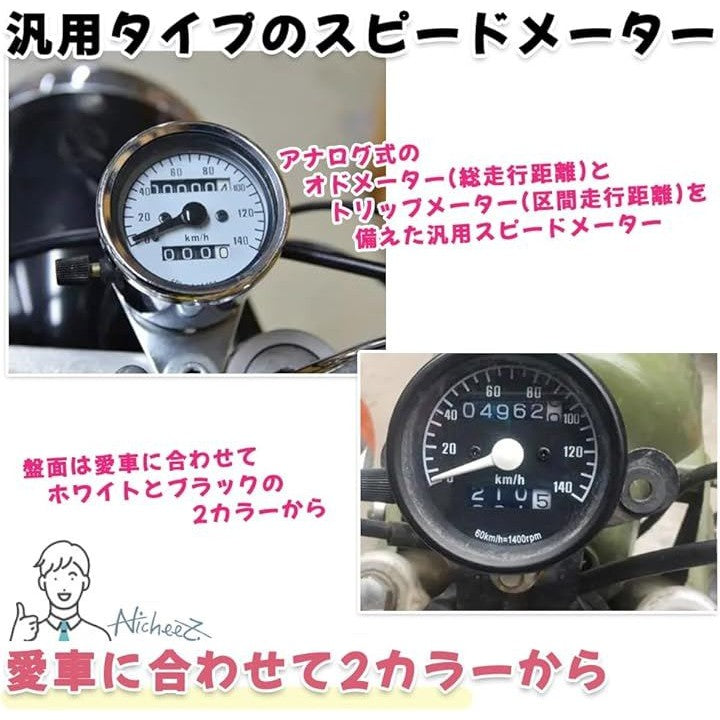 スピードメーター 汎用 バイク用 機械式 140km/h 走行距離付 12V