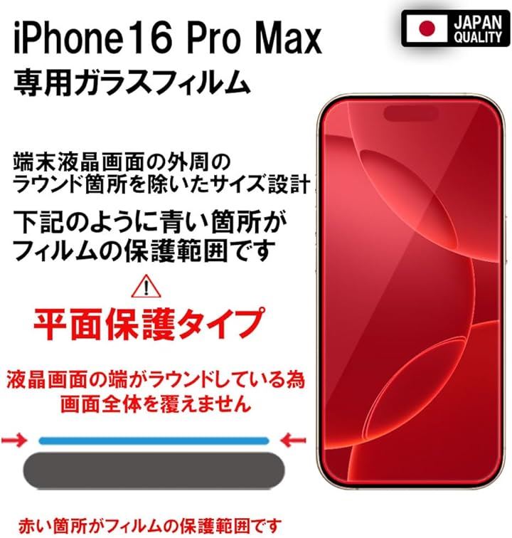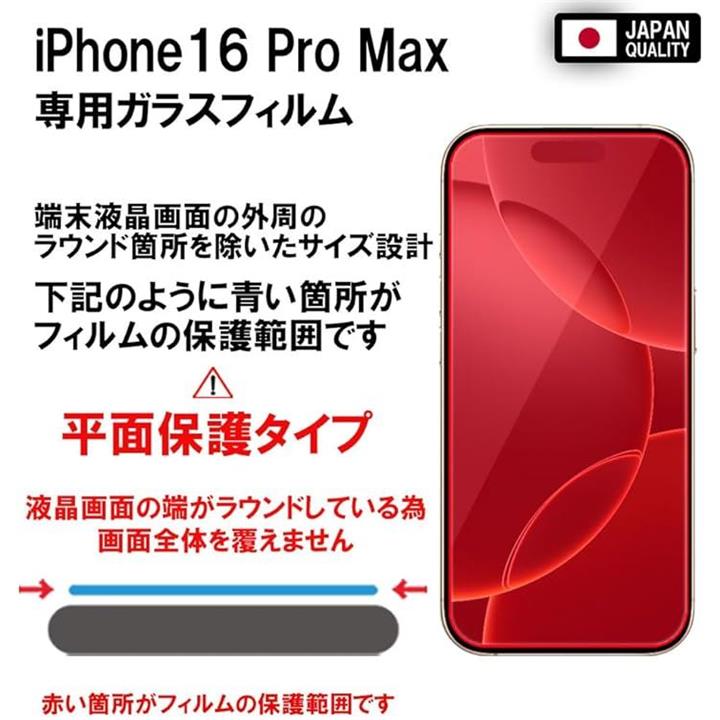 2枚セットフィルム iPhone 16 Pro Max ガラスフィルム ブルーライトカット 93% 保護フィルム 強化 高透過 高光沢 日本製 旭硝子 硬度10H 2.5Dラウンドエッジ 自動吸着 気泡ゼロ 飛散防止 指紋防止 撥水撥油
